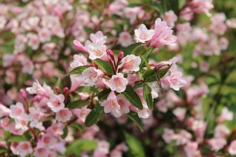 Weigela face primăvara o mulțime de flori sub formă de trompetă, roz sau roșii, dar după ce cad, arbustul nu mai arată atât de impresionant. Dacă găsești varianta variegată, poate fi decorativă și prin frunze după ce cad florile. Toamna, toate soiurile de weigela își pierd frunzele.