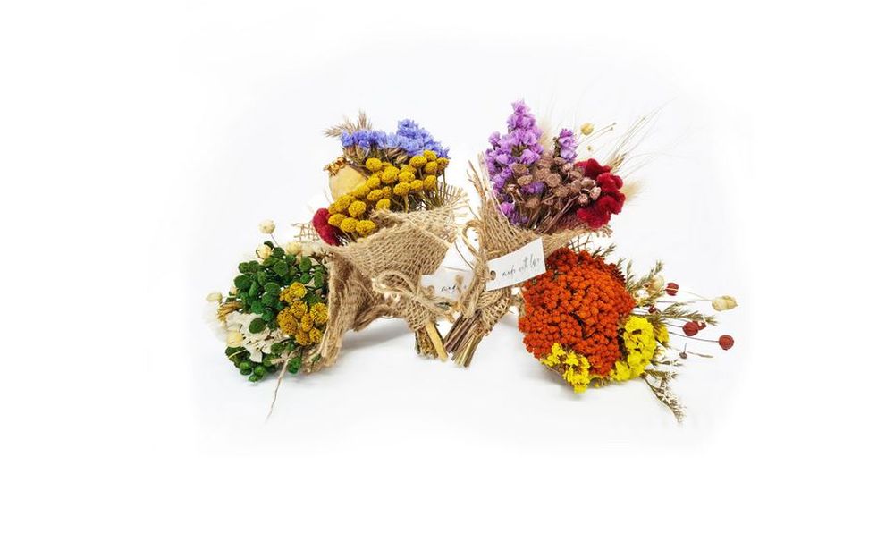 Cumpără ouă cu coaja alba și cu un marker negru desenează ochi, nas și gură pe fiecare ou. Lipește pe capul micuțelor flori uscate și pune-le ca decorațiuni la masa de Paște într-un coș cu material textil.