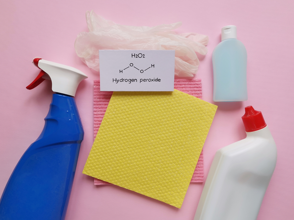 - Aplică peroxid de hidrogen direct pe pată și lasă să acționeze timp de 3 minute.