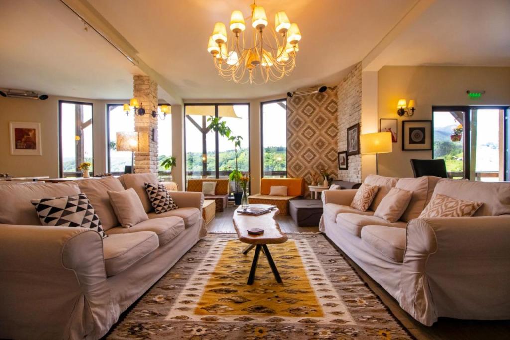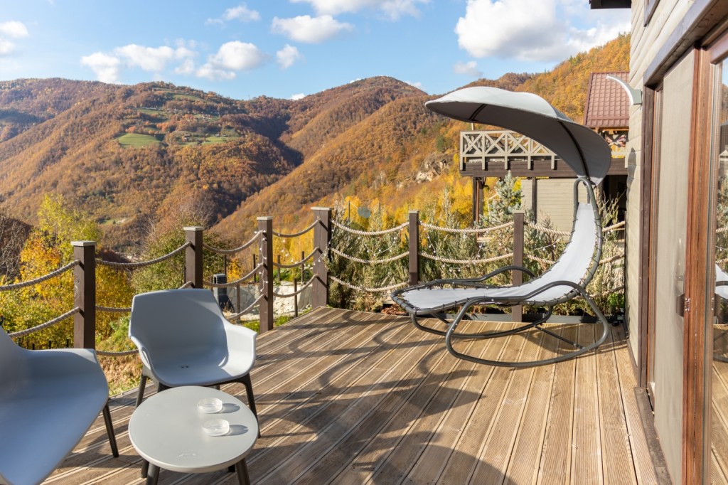 Locul oferă în primul rând o panoramă spectaculoasă, o terasă așezată la soare, spații de relaxare în aer liber, o saună, o cadă cu hidromasaj și terapii de relaxare, servicii de masaj și chiar și cursuri de yoga, dacă te tentează, în timpul sejurului.