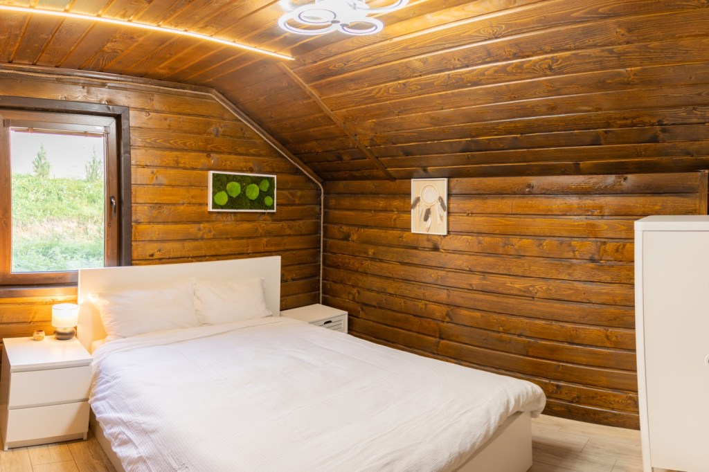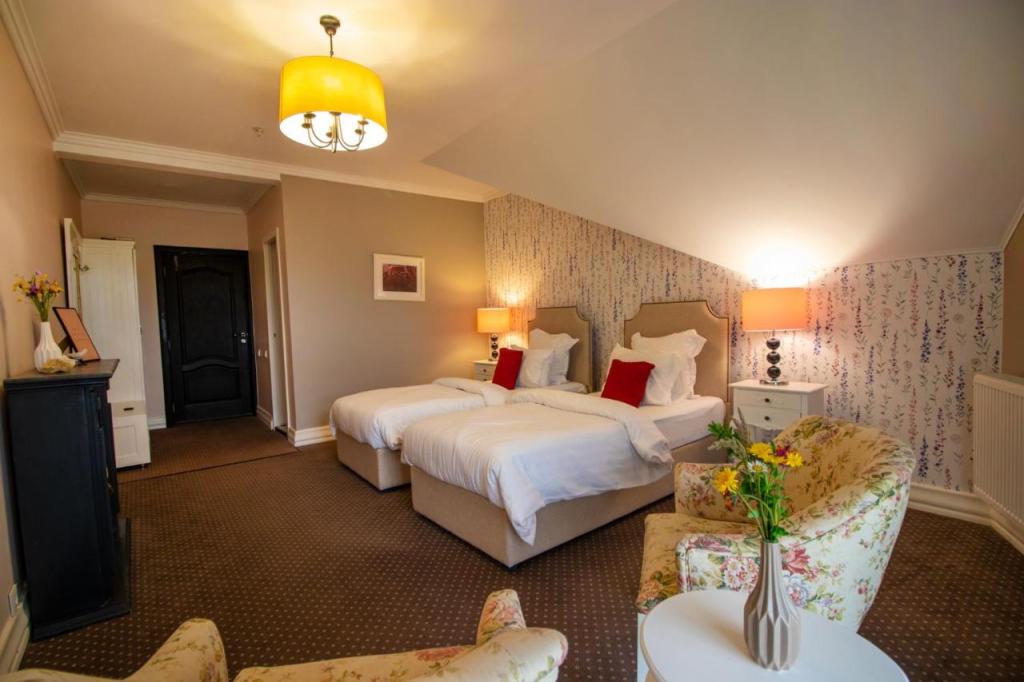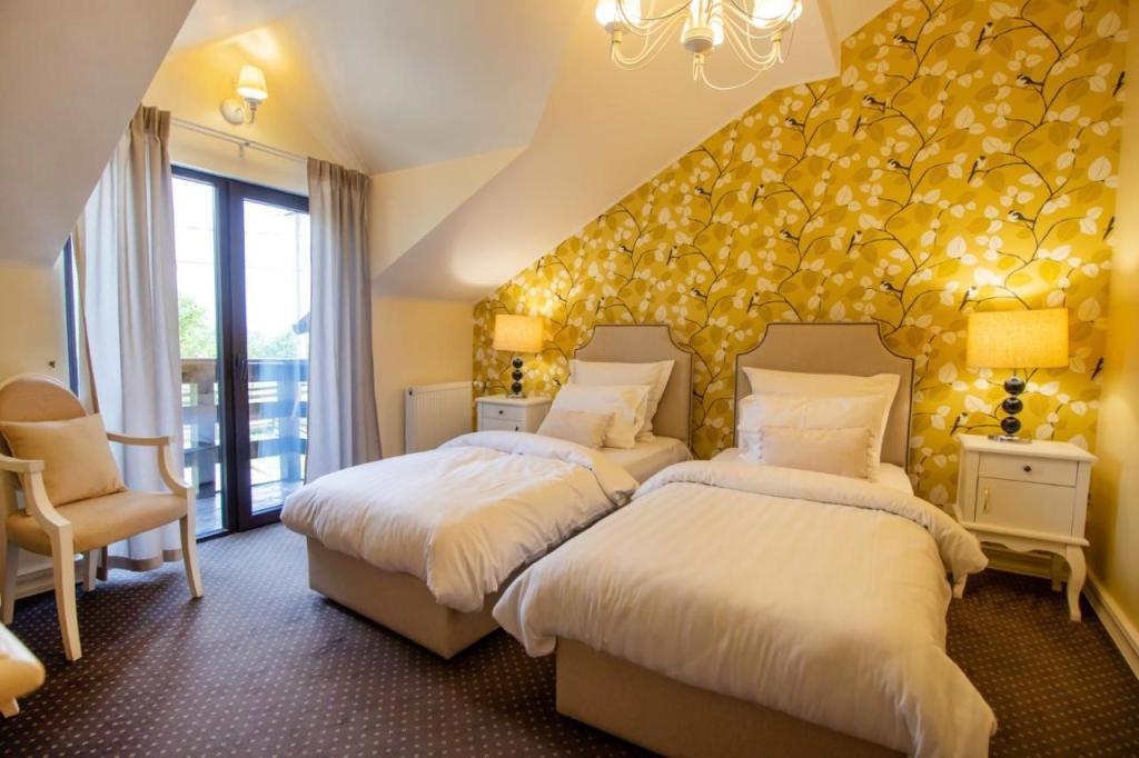 Camerele luminoase sunt decorate cu bun gust, în culori deschise și cu mobilier din lemn pictat cu motive tradiționale, iar băile cu dimensiune generoasă sunt ornate cu piatră naturală.