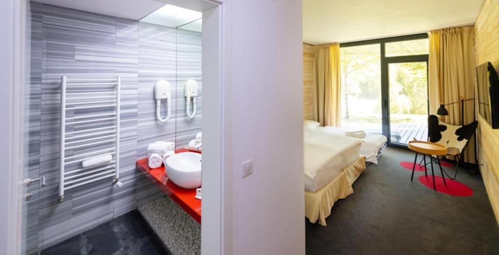 Este vorba despre un hotel ecologic de patru stele care oferă facilități de SPA: cadă cu hidromasaj interioară, cadă cu apă termală și cadă cu hidromasaj.
