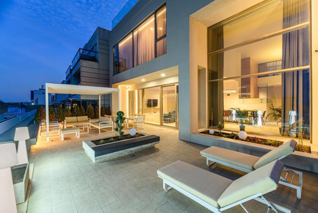 Cu o piscină pe acoperiș, un lounge comun și o terasă imensă cu vedere la mare și la lacul Techirghiol, această proprietate de pe malul mării are patru dormitoare spațioase, cinci băi, o zonă de luat masa și o bucătărie complet utilată.