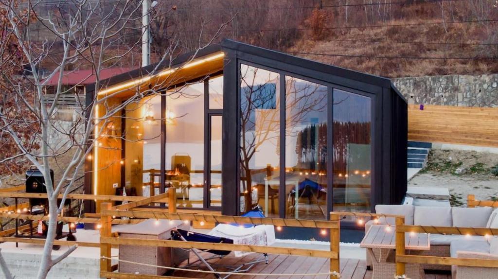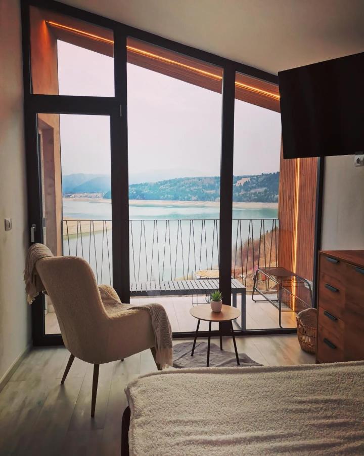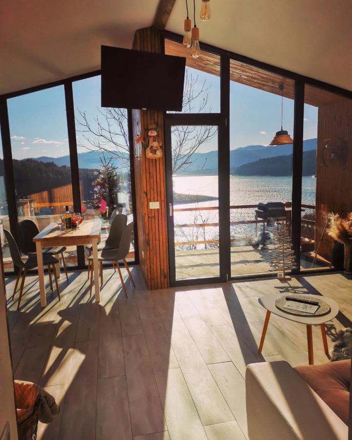 Ultima experiență este un pic diferită, pentru că oferă design ultramodern în inima unui sat din județul Neamț. Casele de vacanță Moon Lake Bicaz se află la mai puțin de 18 kilometri de Barajul Bicaz și au vedere la lac, zonă de relaxare, bucătărie dotată complet, cu plită și frigider, baie și o terasă de pe care să admiri peisajul de vis. Cuplurile apreciază în mod deosebit această cazare cu vedere la lac, grație ferestrelor generoase, până în podea, care te aduc mai aproape de natură și de starea de bine.