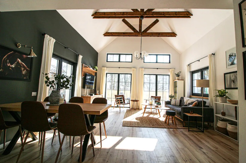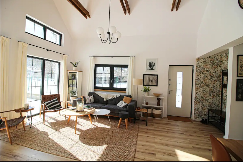 Din fosta configurație a casei vechi cumpărate de soții Gray au rămas doar pereții și fundația din piatră de râu. În rest, au modificat totul, de la băi, bucătărie și până la exterior. Dar au păstrat și au refolosit grinzile de lemn și pereții din lemn stil rândunică, vechi de cel puțin 100 de ani.
