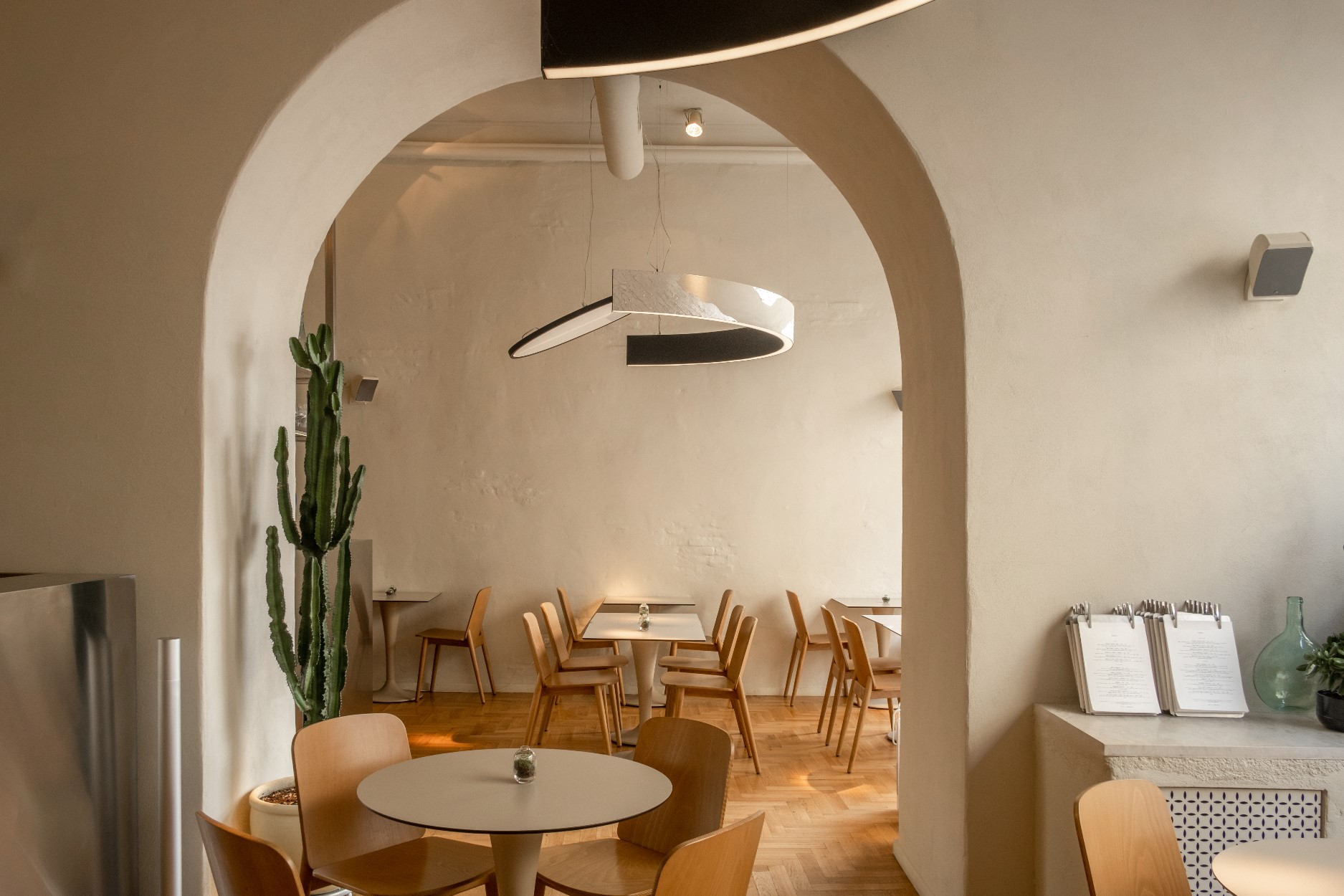 Vei găsi restaurantul pe strada Ermil Pangratti, un loc simbolic pentru cultura interbelică a Bucureștiului, spune Radu, o stradă încărcată de amintirea vechilor ateliere de creație, pictură și sculptură a acelor vremuri. Spațiul, continuă chef-ul este „un loc artistic, cu suflet vibrând pentru creație și artă. Acum, în viziunea noastră, o artă gastronomică uneori abstractă, însă plină de integritate.”