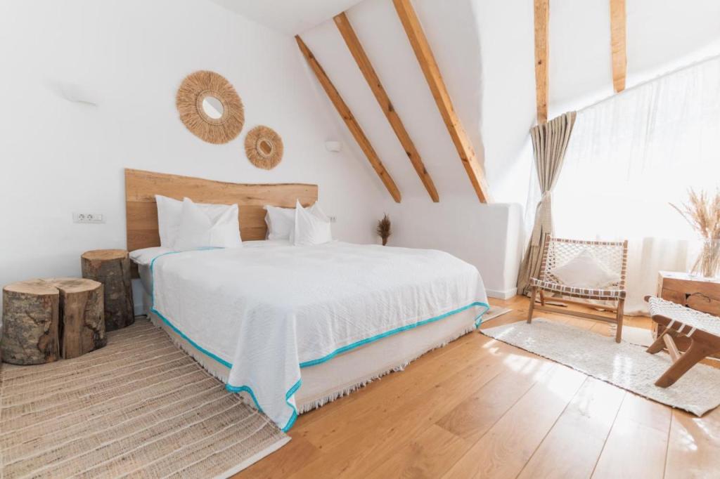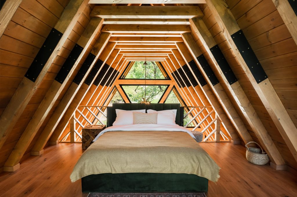Cele două cabane, Cerbul și Căprioara, au câte două dormitoare fiecare, iar la parter au câte un living cu bucătărie deschisă, zonă de luat masa și terasă, în timp ce natura este invitată și în interior. Explorarea naturii începe în grădina de 4000 de metri pătrați, unde poți admira o fermă de legume și o mică livadă unde, pe lângă alți pomi fructiferi și înfloriți în această perioadă, sunt și doi peri de peste 100 de ani.