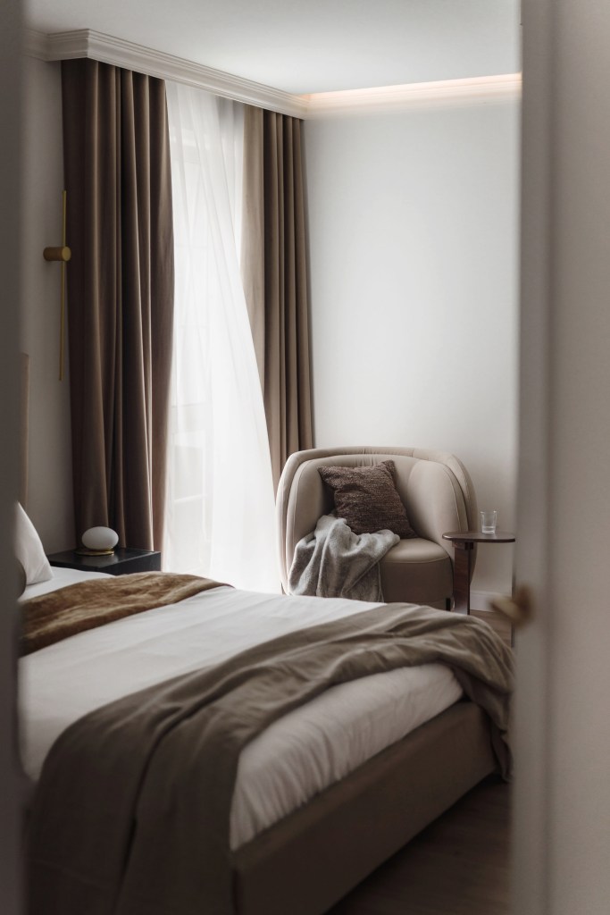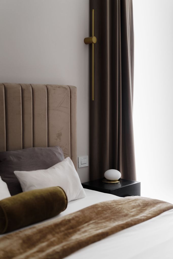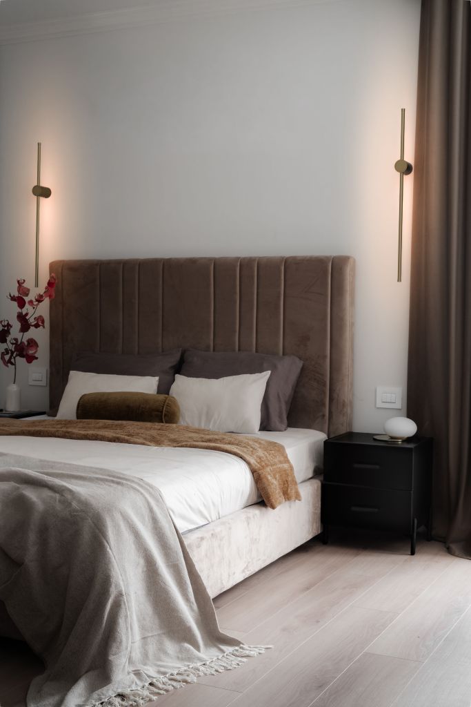 Culori neutre și texturi catifelate în dormitorul matrimonial