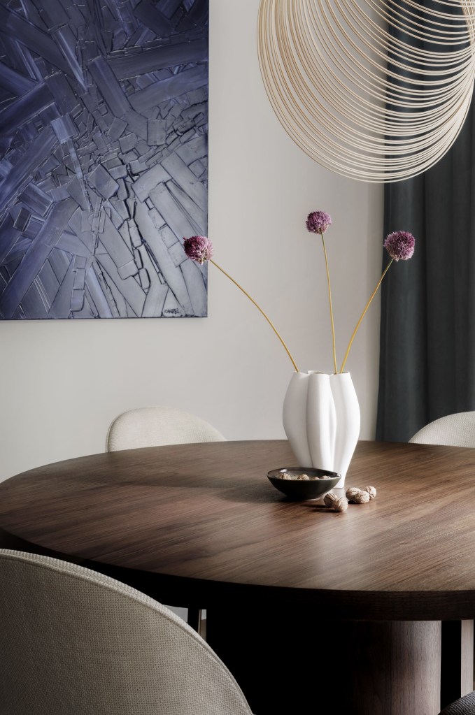 „Am pornit de la o cromatică vibrantă, definită de două culori: albastru și vișiniu”, spune arhitecta Mara Alexandra. „Sunt nuanțe care conturează o atmosferă plină de viață și de energie. Sunt, într-adevăr, culori cu personalitate, dar puse în contextul potrivit, ele pot transforma complet un spațiu”.