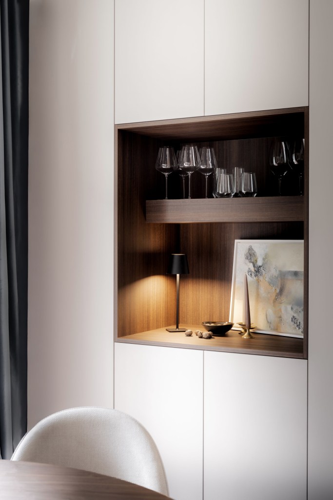 Arhitecta Mara Alexandra spune că provocarea proiectului a fost să contureze un interior elegant, care să se adapteze dinamicii unei familii cu copil mic. Proprietarii au insistat pentru depozitări discrete, care să lase spațiul să respire. Soluția a fost mobilierul custom-made, care și-a dovedit, din plin, atuurile, mai ales în open-space și în hol, spații în care a fost nevoie de eficientizarea fiecărui centimetru disponibil.