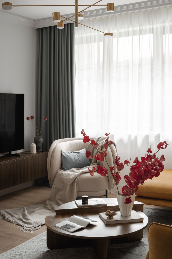 Ca stil de amenajare a interiorului, casa din Cluj integrează elemente minimaliste, mai ales prin liniile simple ale mobilierului. Decorul aduce însă căldură prin cromatica aleasă, prin texturile catifelate și prin atenția acordată detaliilor.