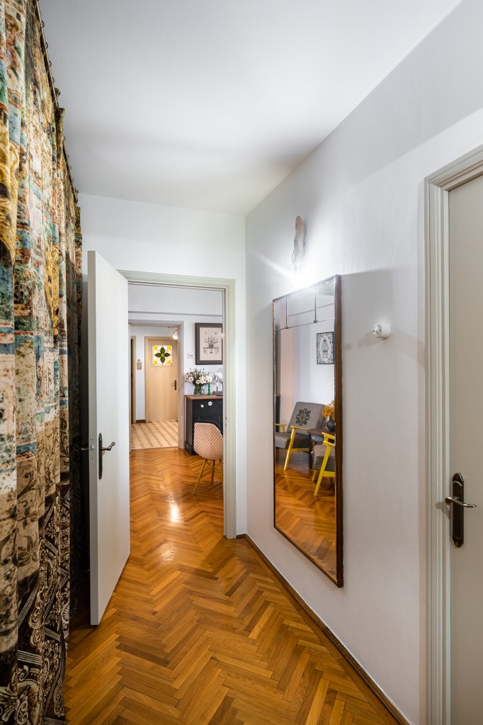 Alina își amintește că a văzut apartamentul din cartierul 1 Mai la începutul lui decembrie 2021. Primul lucru care i-a atras atenția a fost mozaicul de marmură din hol, baie și bucătărie și parchetul din lemn masiv, conservat impecabil, din zona de living. Au fost detalii care i-au plăcut atât de mult, încât a trecut cu vederea faptul că apartamentul avea o suprafață ceva mai mică decât și-ar fi dorit. Pe șantier, lucrurile au mers șnur. În nici o lună și jumătate, Alina putea deja să se mute cu familia în noua lor locuință.