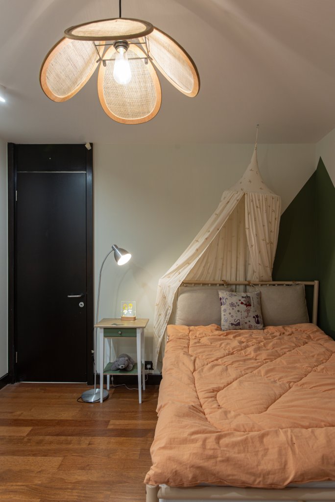 Laura a modificat și schema de iluminat a apartamentului, deși acest pas nu fusese luat în calcul la începutul proiectului. A hotărât să înlocuiască spoturile încastrate peste tot în plafon cu câteva spoturi aparente. Apoi a evidențiat anumite zone, folosind corpuri de iluminat care să continuie firul poveștii create. Ca un mic răsfăț, a integrat în amenajare corpuri de iluminat semnate Dia Buga și întrerupătoare colorate din porțelan de la Katy Pay. Decorul apartamentului este unul contemporan cu accente eclectice (modern mid-century, scandinav și clasic).