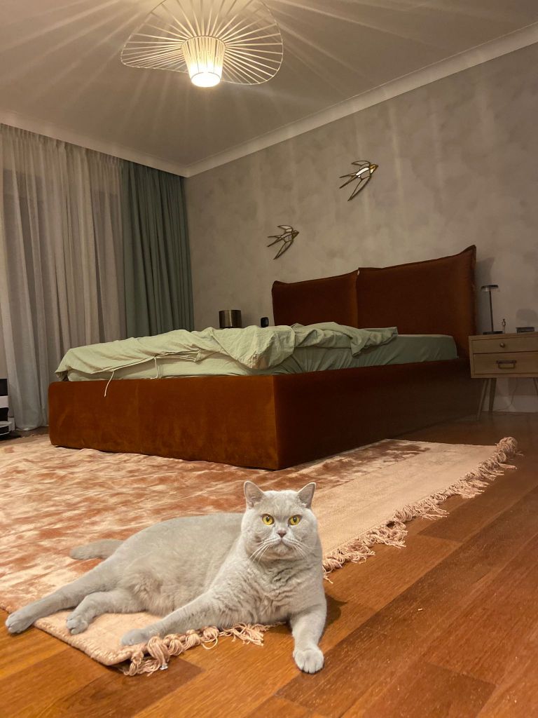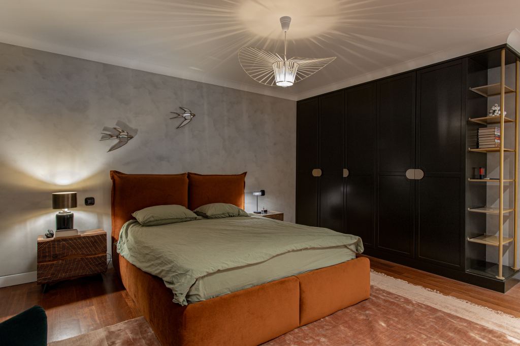 „Am pornit proiectul de la culoarea chihlimbarului. Este o nuanță preferată la unison de toată familia. O nuanță spectaculoasă, dar în același timp, familiară, plăcubilă, ușor de asimilat. Acest lucru poate fi ca o metaforă la întreg conceptul: familiar, dar cu personalitate”, explică Laura. „Se spune despre chihlimbar că este o piatră în puternică conexiune cu pământul. Este un lucru care m-a ghidat în alegerea finisajelor pentru pereți. Avem, așadar, var decorativ, în nuanța lutului, în dormitorul matrimonial, glet cu efect de tablă de șah în living, piatră naturală la backsplash-ul din bucătăriei, și forme de verde și teracotă în dormitoare”.