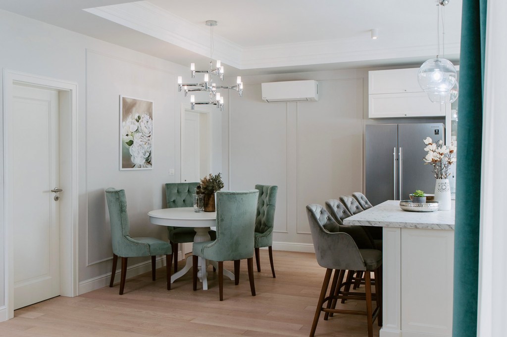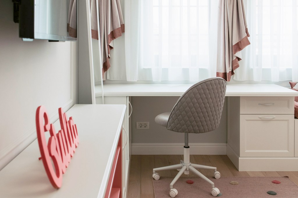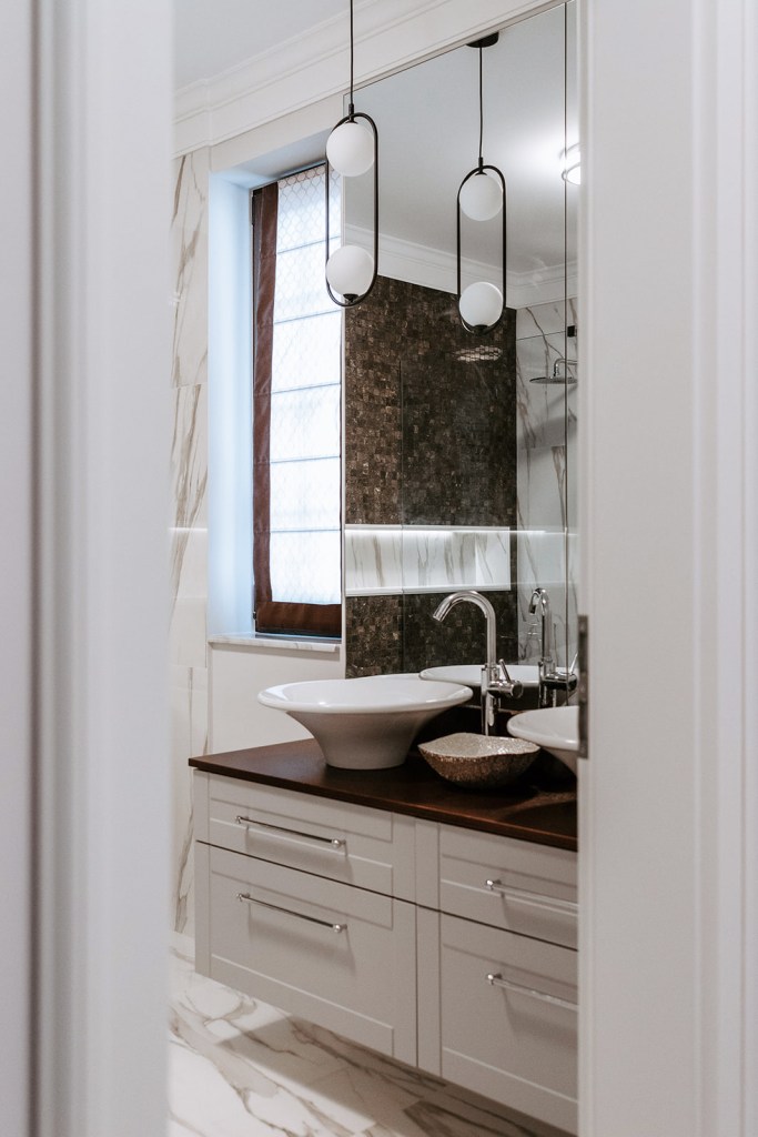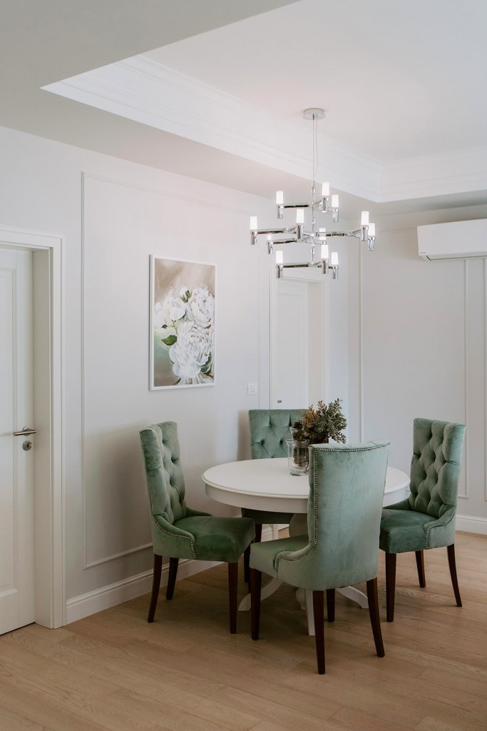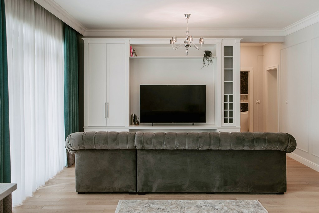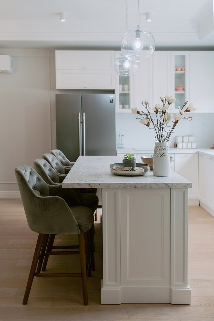 Cât despre beneficiari, Raluca spune că aceștia au avut încredere în conceptul de design încă de la început. Pentru fiecare pas, designerul le explica motivația din spatele alegerilor ei și așa a fost mai ușor și pentru ei să fie ok cu deciziile finale. Într-un final, au primit ce și-au dorit: și anume un spațiu elegant, cu mobilier alb și luminos. Chiar dacă designul sugerează în mare un stil neoclasic, are și influențe contemporane prin decorațiunile reduse la minimum și micile accente de culoare care animează spațiile.