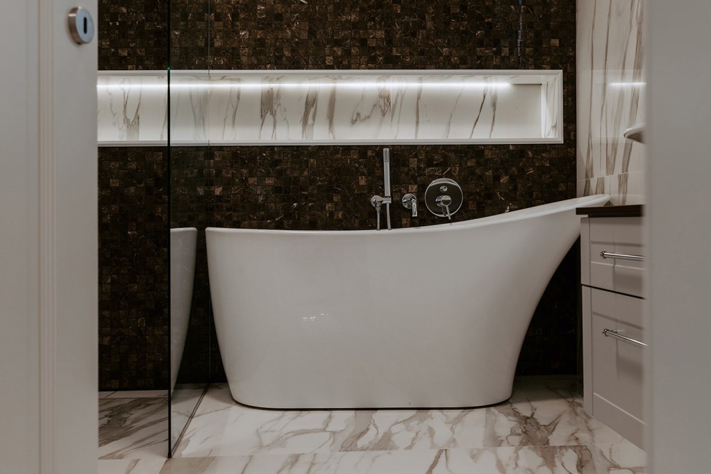- Alege mai multe soluții de iluminat pentru baie. Vei putea să schimbi atmosfera de la o zonă utilitară la una de relaxare, asemenea unui centru Spa.