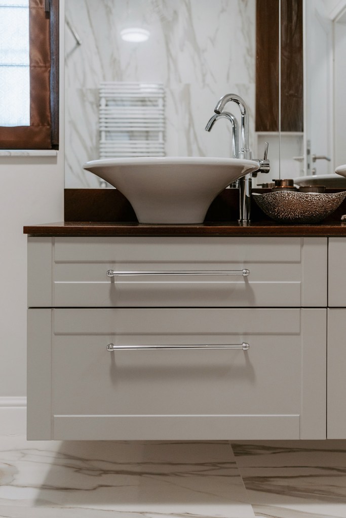 Singura dificultate cu care Raluca s-a confruntat a fost dressingul prea mic pentru nevoile familiei. „Am reușit să optimizăm mobilierul, astfel încât să ofere cât mai multe soluții de depozitare pentru haine și încălțăminte”, spune ea. Poate că acesta a fost motivul pentru care cea mai mare parte din buget a fost alocată mobilierului realizat la comandă.