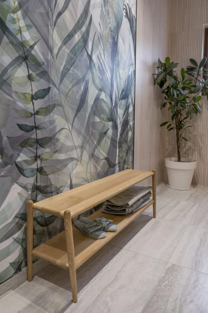 „Ca estetică, proprietarii și-au dorit o locuință cu atmosferă caldă, culori deschise și texturi naturale precum piatra și lemnul, dar și elemente care să aducă eleganță, cum sunt oglinzile și accentele aurii. Am ajuns la o amenajare cu puternice influențe clasice, dar pe care am încercat să o scoatem din acea zonă de atmosferă prețioasă, ce pare greu de întreținut”, spune arhitecta Georgiana Ursu.