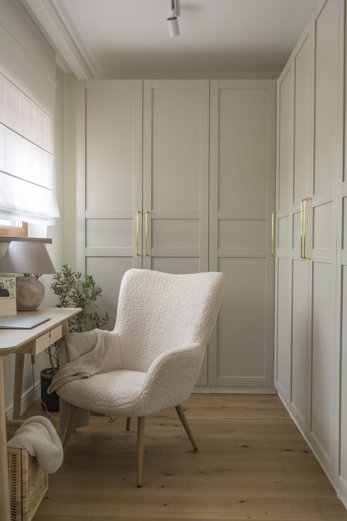 Deși fiecare colț al casei spune propria poveste, există elemente care fac ca amenajarea să meargă pe același fir narativ. Culorile neutre, texturile naturale, accentele aurii sau profilele decorative care duc decorul într-o zonă elegantă sunt detalii ce se reiau în tot proiectul, ajutând la menținerea unei coerențe vizuale.