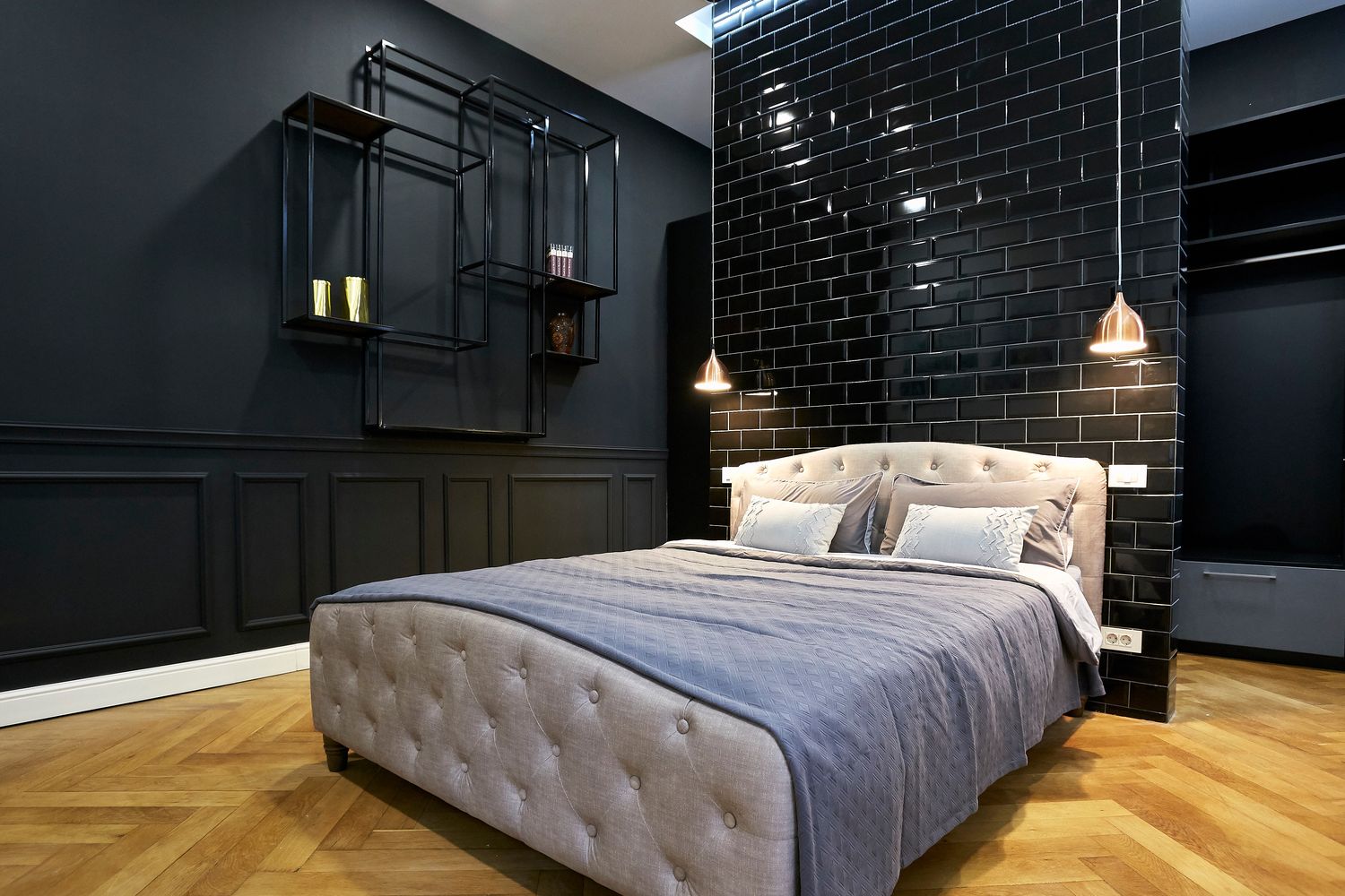Un dormitor cu pereții negri nu e ceva obișnuit, dar arată atât de bine încât merită să-i dai o șansă, mai ales dacă îți place stilul avangardist. Designerul de interior Laurențiu Paicu a creat un dormitor în care domină negrul, dintr-un apartament din Brașov. El recomandă să te joci cu finisajele și consideră că nimic nu este destinat strict pentru un spațiu anume, de aceea a adăugat dormitorului un perete din ceramică neagră. Pentru un look desăvărșit combină texturi mate cu cele lucioase.