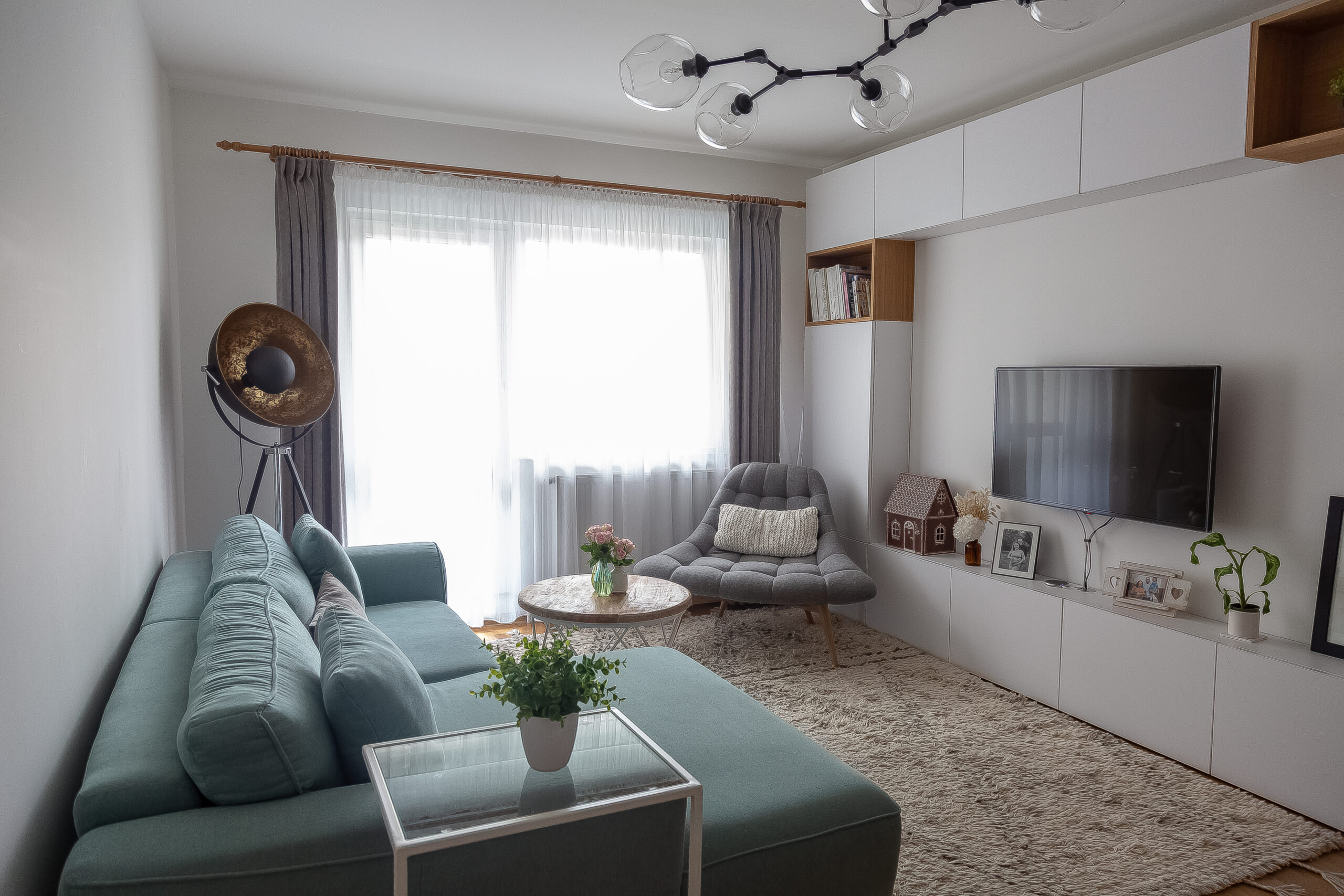 Doi IT-iști din Cluj au cumpărat un apartament în cartierul Mărăști, în 2013. Au locuit în el doar două luni de zile și apoi s-au mutat în Anglia, în urma unei oferte de job. Au revenit în țară în 2018 și au apelat la serviciile unui arhitect care să îi ajute să decoreze apartamentul lăsat nelocuit. Pe atunci erau în formulă de trei. În prezent, familia include cinci membri: Delia și soțul ei, Teddy, cei doi copii, Emma și Filip și pisica lor, Luna.
