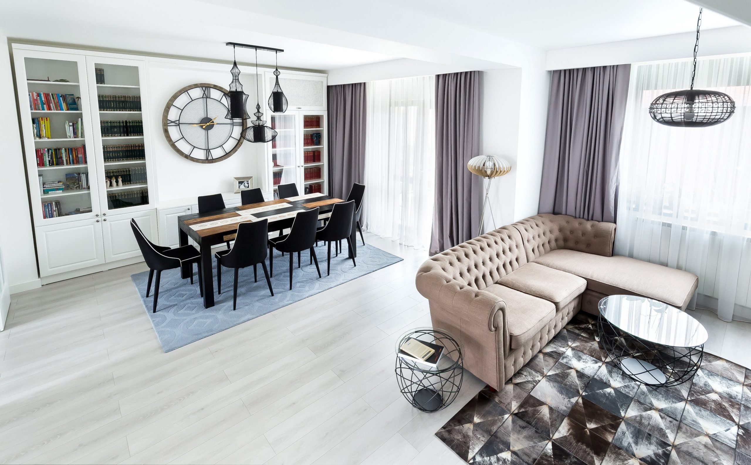 Accentul a fost pus atât pe funcționalitate, cât și pe estetică și fiecare spațiu a fost tratat de Ștefania individual – personalizarea se reflectă în compartimentare, proporția dintre funcțiuni, mobilier și accesorizare (sau lipsa ei). Amenajarea s-a derulat pe parcursul a șase luni, iar zona preferată a familiei a devenit masa de dining, cu ceasul de perete pe care și l-au dorit încă de la început.