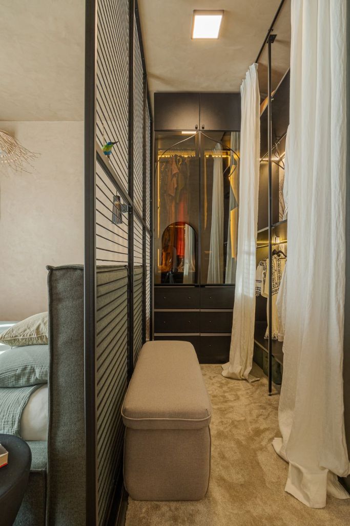 Dezvoltatorul prevăzuse doar un colț mic pentru dressing, însă și-au dat seama că nu este suficient, așa că au ales să creeze un dressing deschis, cu o vitrină tip arcadă maură și cu perdele fluide din in. Zona de dressing și cea de somn a fost delimitată cu ajutorul unei mochete tocmai pentru a se crea impresia unei cabine de probă.