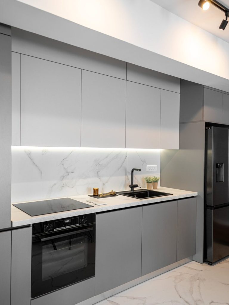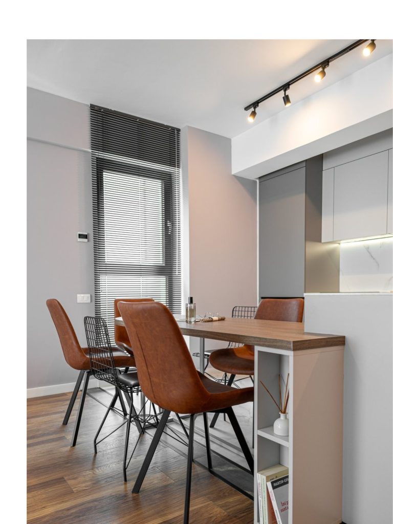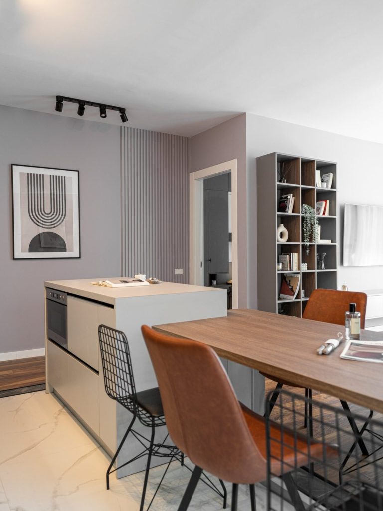 Amenajarea unui apartament din Pipera a avut 3 criterii: culori închise, ușor de întreținut, șantier scurt și multe spații de depozitare