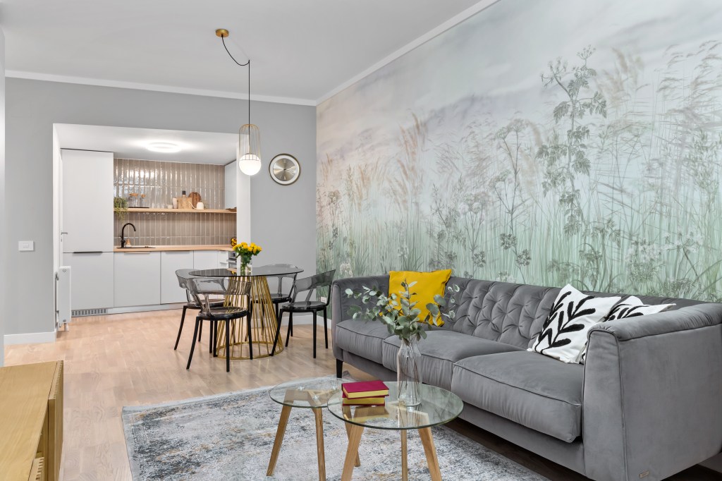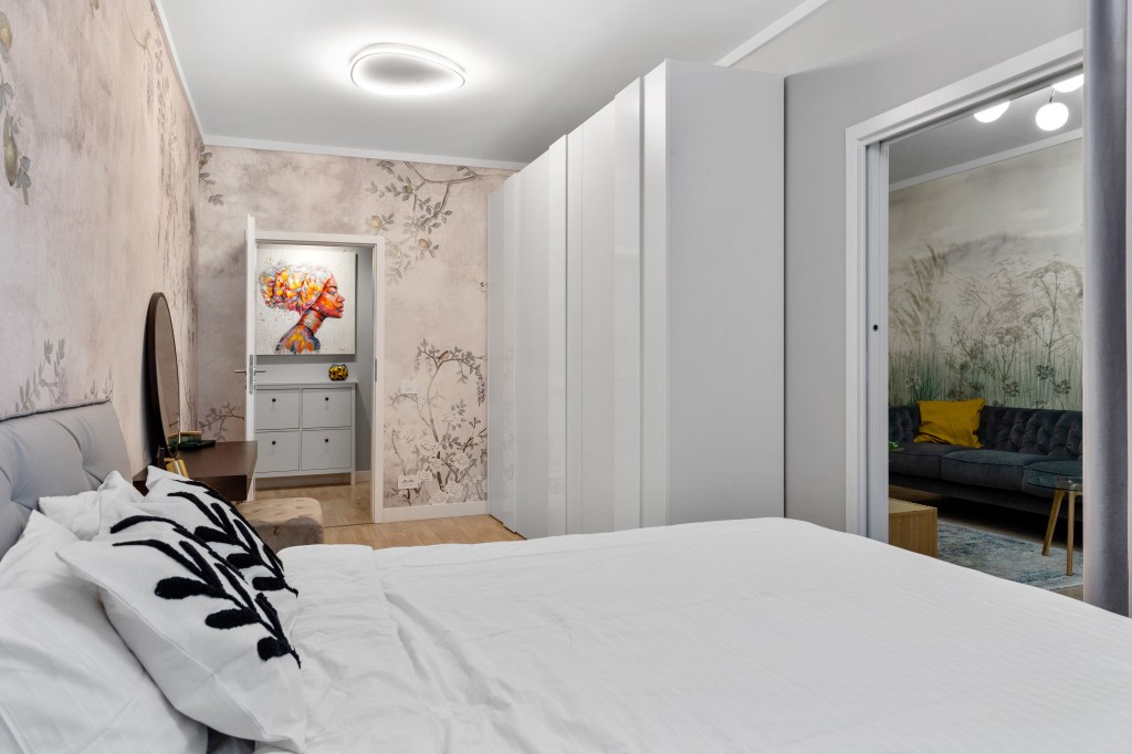 Tapetul, laitmotivul din amenajarea unui apartament de 54 metri pătrați din București