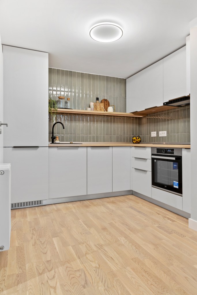 „În bucătărie, avem spațiu de depozitare generos, deși este o încăpere cu dimensiuni modeste. Am reușit să găsim loc pentru toate electrocasnicele de care ai nevoie într-o casă, inclusiv pentru mașina de spălat vase”, povestește Alexandra. „Fiind poziționată în legătură vizuală directă cu livingul, am optat pentru corpuri suspendate doar pe latura mai puțin vizibilă din spațiul deschis, deoarece înălțimea în această zonă era de doar 2,25 centimetri și nu am dorit să încărcăm vizual prea mult capătul de perspectivă”, adaugă arhitecta.