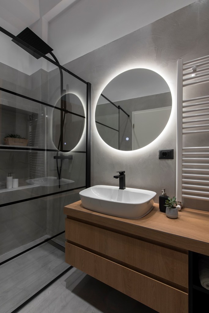 - Poți schimba dramatic aspectul unei băi fără a sparge finisajele vechi (mai ales dacă finisajele existente sunt în stare bună), folosind microciment. În plus, acesta se poate hidroizola. Este un material excelent în dușuri, de exemplu.