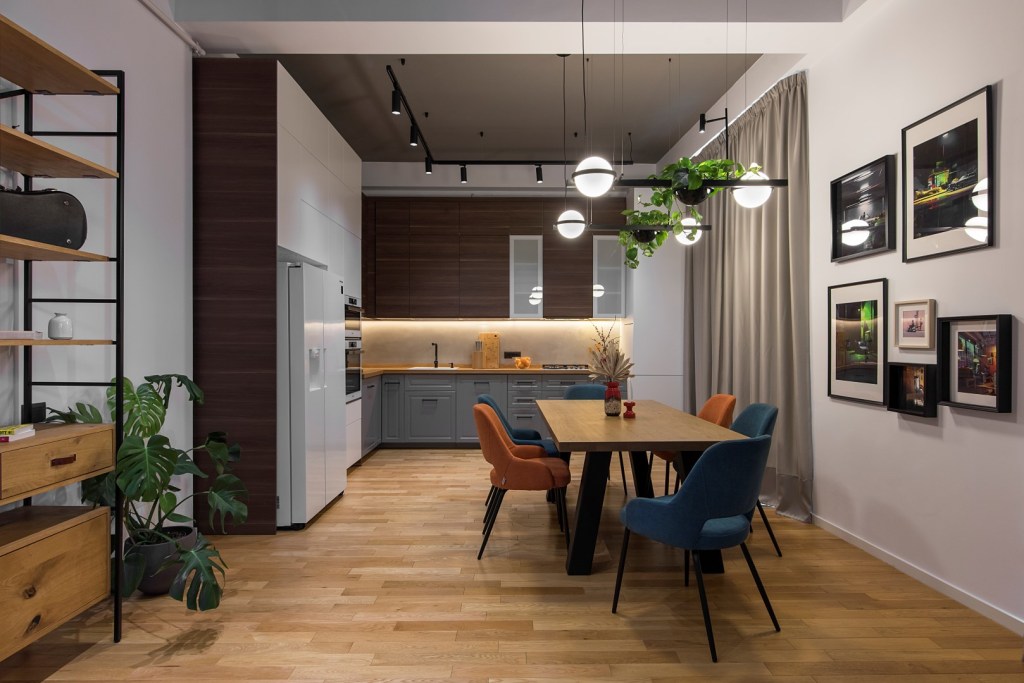 Arhitecții Alexandru Bucur și Sonia Dabija de la Interiology Design Studio au reușit să transforme un apartament spațios de aproape 120 metri pătrați într-o locuință modernă și confortabilă. Proprietarii, persoane active, obișnuite să aibă mereu prieteni în vizită, și-au dorit un spațiu care să se plieze pe stilul lor de viață. Amenajarea a durat aproape șase luni și a dispus de un buget de 50.000 euro.