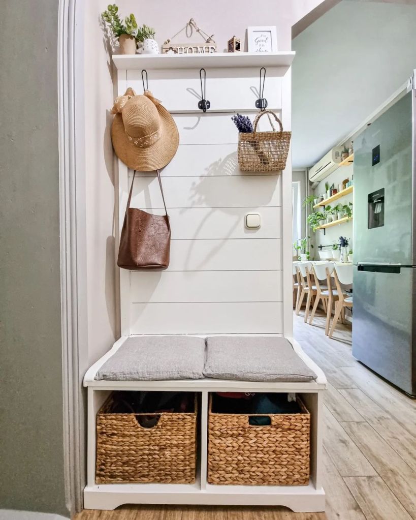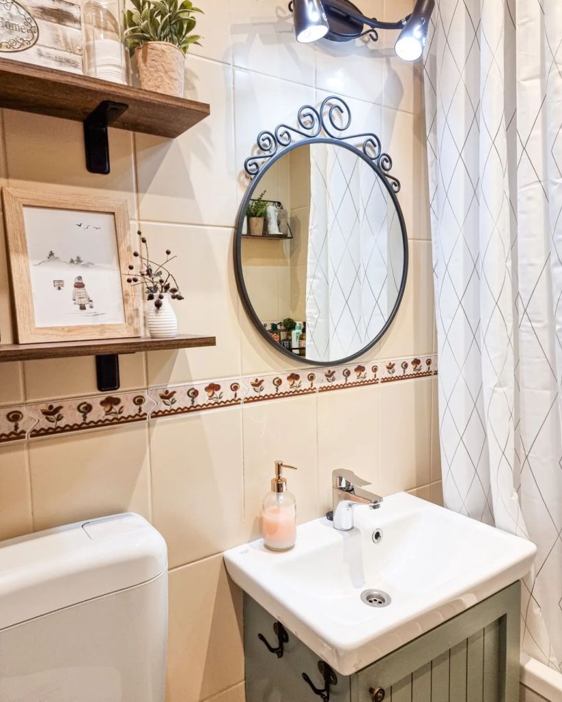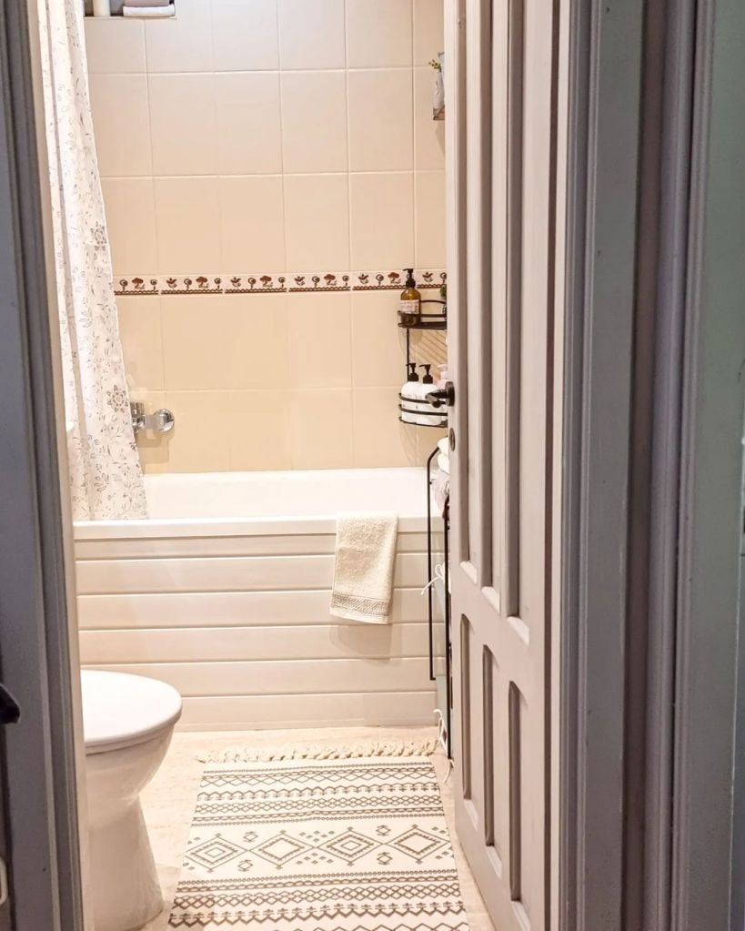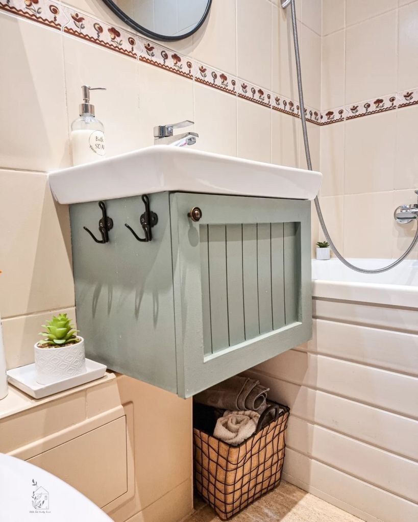 Proiectul DIY: Sunt foarte multe proiecte făcute de mine. De exemplu, am vopsit toate ușile de interior cu vopsea cretă de la Annie Sloan. Chiar și interiorul ușii de la intrare e vopsit de mine, cu vopsea de la Hornbach. Am vopsit și faianța din baie cu vopsea specială de la Hornbach. Am avut o faianță bordo care făcea ca baia să pară și mai micuță.