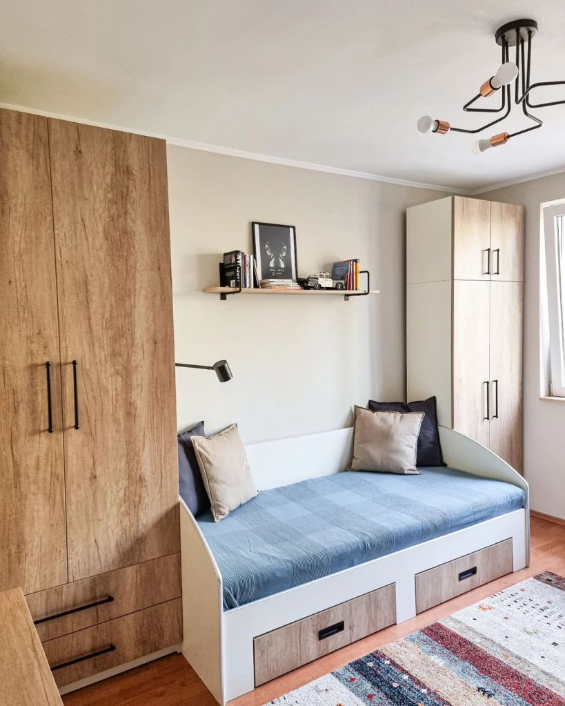 Apartamentul de 58 metri pătrați al unei familii cu doi copii, în care livingul este și dormitor matrimonial