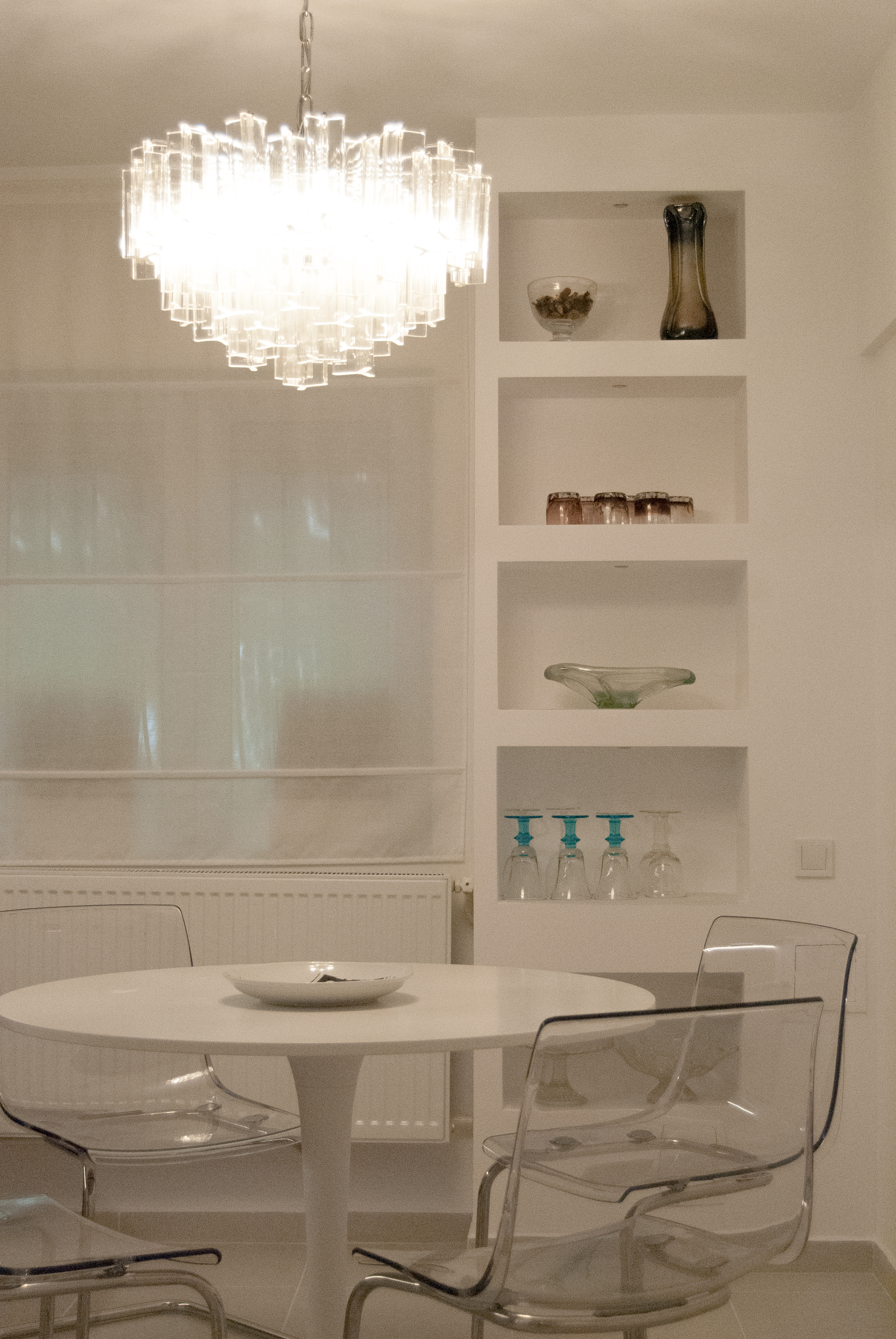 În bucătărie, scaunele alese pentru zona de dining sunt transparente, iar faptul că permit privirii să le pătrundă dă senzația de încăpere mai mare.