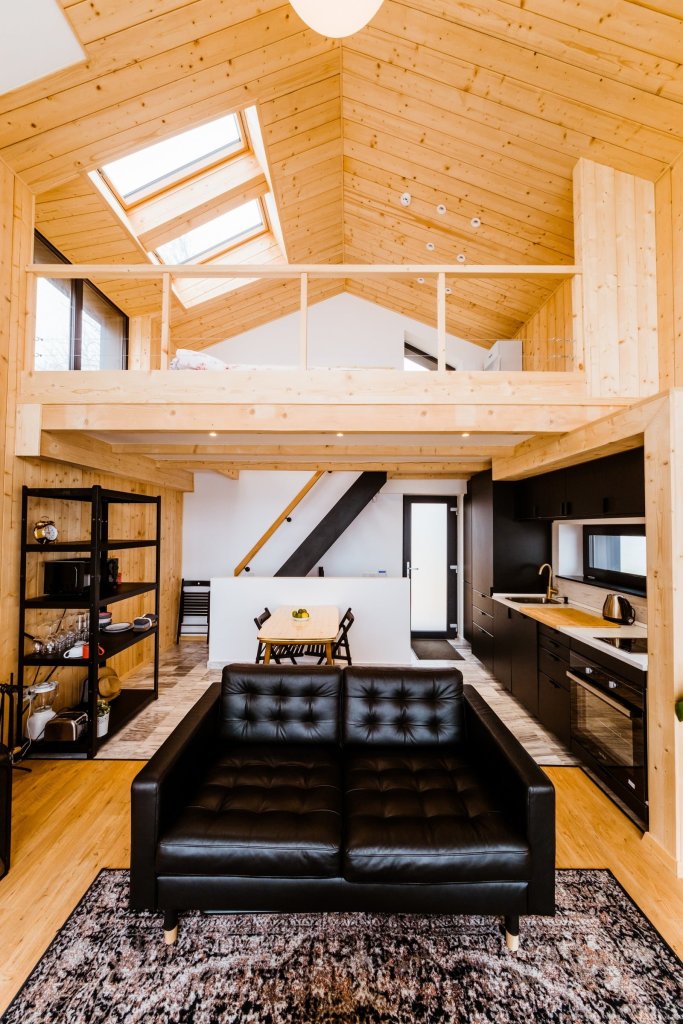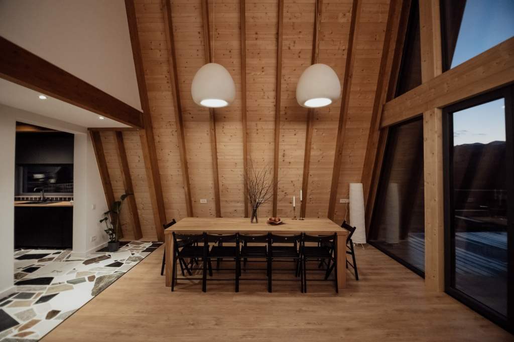 Cabanele A frame au o suprafață de 180 metri pătrați, desfășurați pe două niveluri, plus mansardă. Capacitatea de cazare este de 12 persoane. Arhitectura cabanelor a fost realizată în colaborare cu arhitectul Marius Velicu de la studioul de arhitectură dubluVstudio. În ceea ce privește amenajarea interiorului, Paul și Iulia au încercat să meargă pe spații cât mai aerisite, astfel încât decorul să nu concureze cu frumusețea peisajului de afară. Stilul ales este unul contemporary cozy cu influențe scandinave.