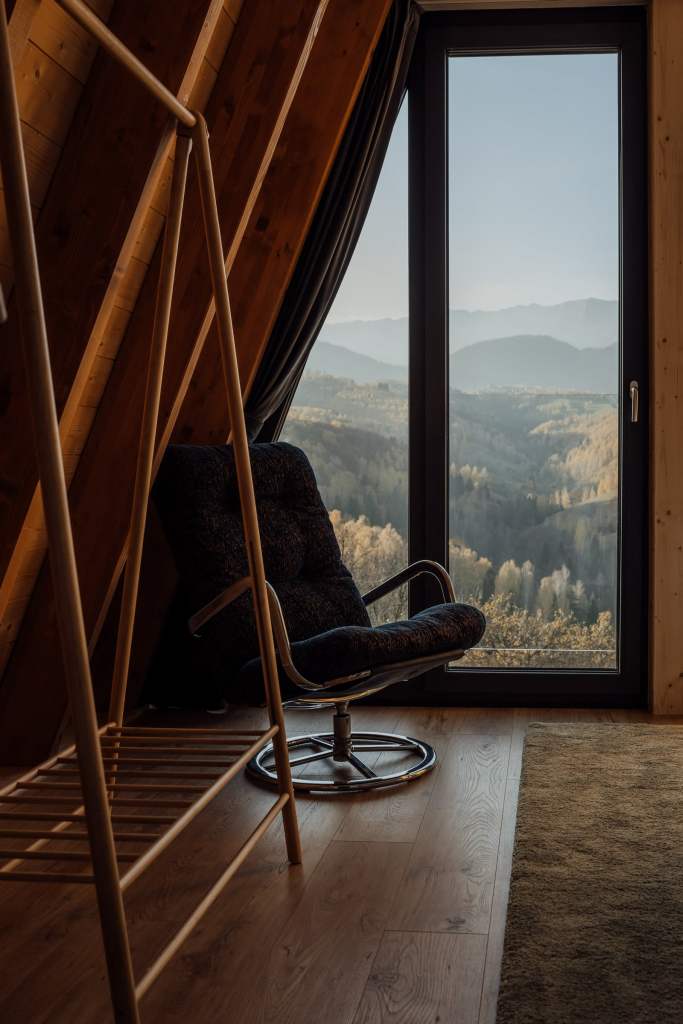 „A fost un proiect care ne-a scos din zona de confort și ne-a testat mult răbdarea și perseverența”, spune Paul. „Cred că toată experiența noastră anterioară, toate călătoriile și activitatea noastră din zona de business ne-au ajutat să ducem lucrurile la bun sfârșit. În ceea ce privește arhitectura cabanelor, am pornit de la ideea de a pune cât mai bine în valoare frumusețea peisajului. Structura aceasta A frame, cu suprafață mare vitrată, reușește să facă, foarte bine, acest lucru. Ne-a plăcut și că este o formă modernă, care se încadrează frumos în peisajul de munte”.