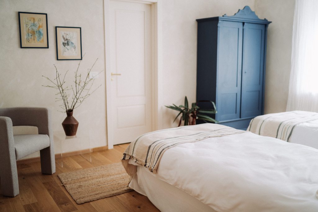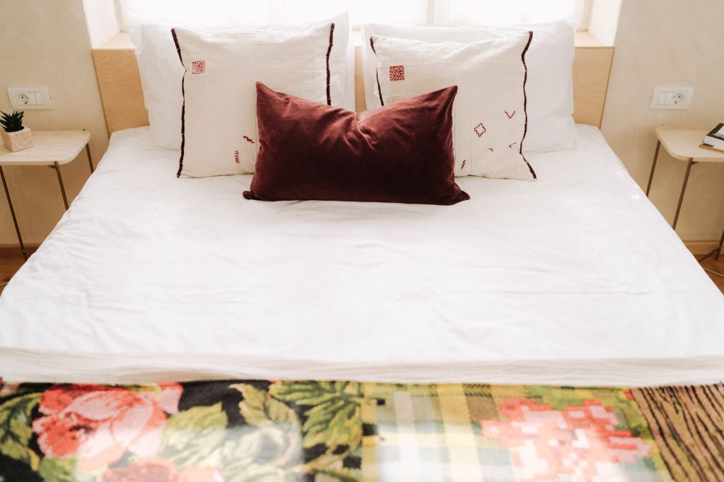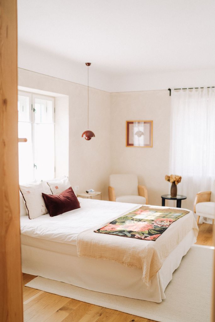Încăperile sunt spațioase, cu tavan înalt și lumină naturală din belșug. Compartimentarea a rămas neschimbată, cu mențiunea că au adăugat baie proprie fiecărei camere. Refacerea acoperișului a fost una dintre cele mai mari provocări ale proiectului. Au recuperat țiglă veche de la diverși oameni care au făcut renovări în sate de prin preajma Brașovului, iar Adriana își amintește că montajul a fost anevoios.