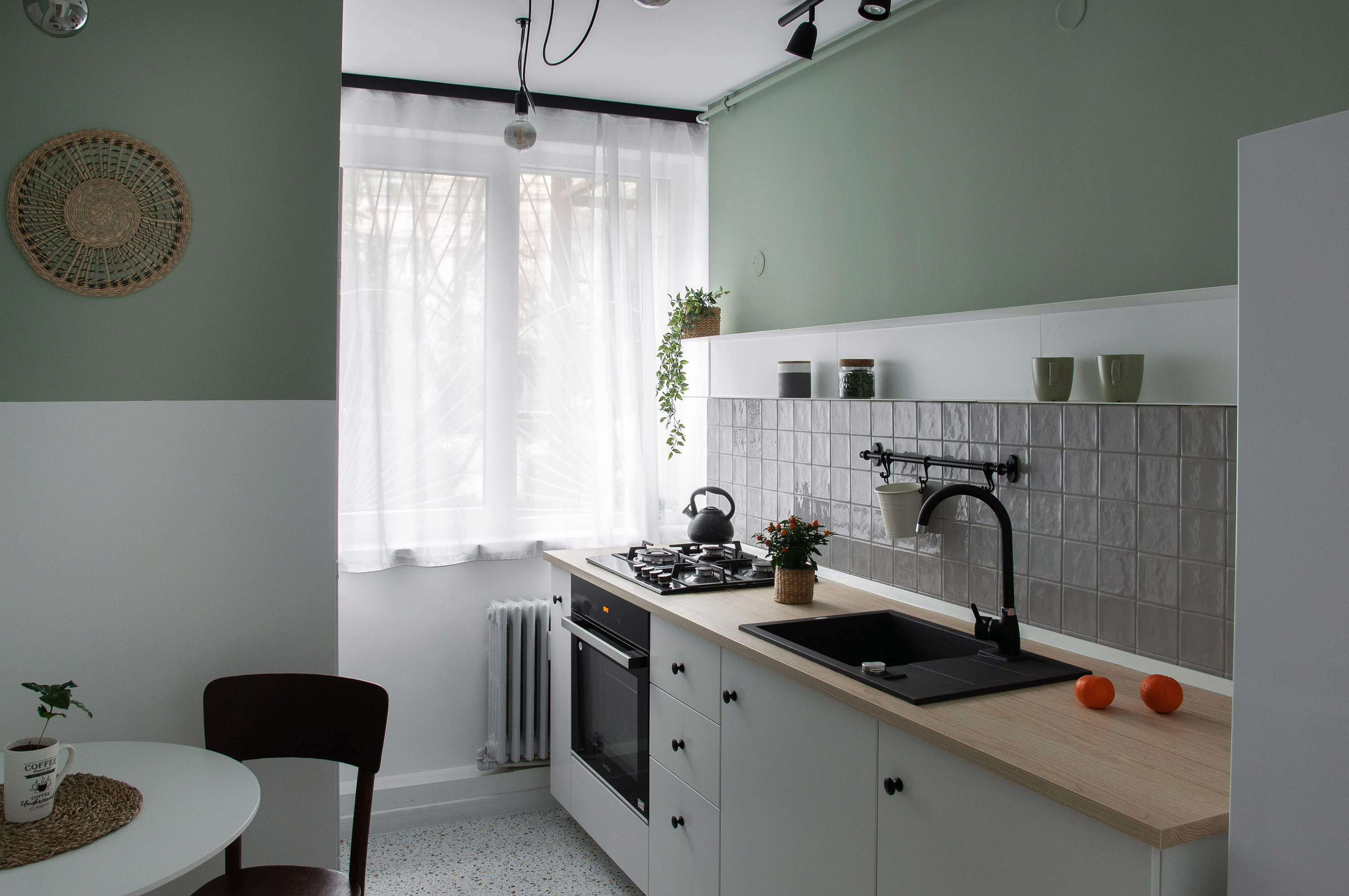 „Urmăresc multe site-uri de profil și conturi de Instagram. Probabil că asta m-a ajutat să găsesc o formulă de amenajare care să pună în evidență potențialul acestui loc de care mă leagă atâtea amintiri. Am vrut ca interiorul să fie o prelungire a grădinii din fața blocului, o oază de vegetație care – în timpul verii – te face să uiți că trăiești într-un oraș aglomerat și prăfuit. Este motivul pentru care am folosit verdele ca accent în bucătărie. Tot în ideea aceasta, am integrat în decor, pe cât posibil, materiale naturale. Am folosit bumbac, in, iută și multe plante”, spune Alina.
