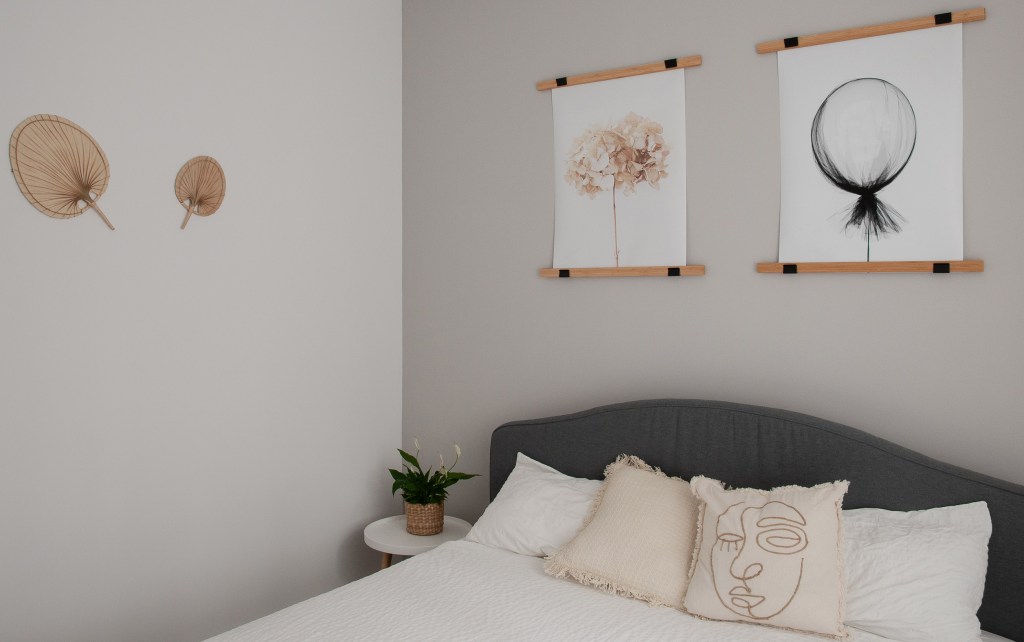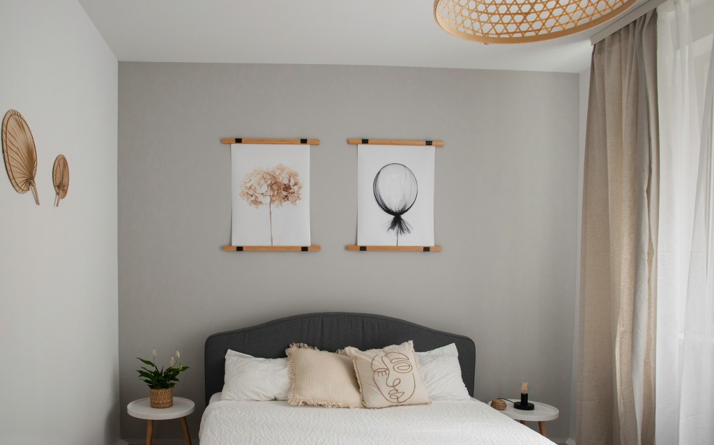 În ceea ce privește amenajarea, Alina a reușit să integreze elemente din mai multe stiluri care îi plac: scandinav, boho, puțin retro, chiar și câteva detalii industriale. Cu toate acestea, estetica interiorului este cât se poate de armonioasă și de coerentă. Cromatica aleasă este alcătuită predominant din nuanțe neutre (gri, bej deschis). Există însă și câteva accente de culoare care să dea dinamică spațiului. Alina spune că nu a avut neapărat o sursă de inspirație când s-a apucat de renovarea apartamentului. S-a lăsat ghidată de dragostea pe care o are pentru domeniul designului interior. A urmat și cursuri în domeniu, lucuru care a ajutat-o să își pună în practică toate ideile.