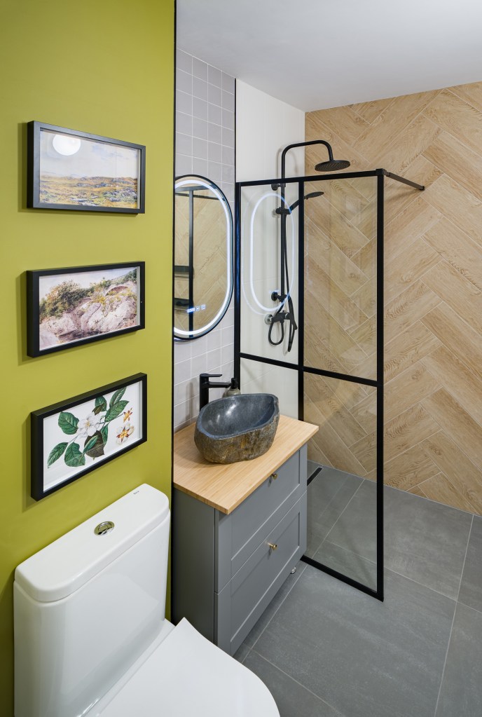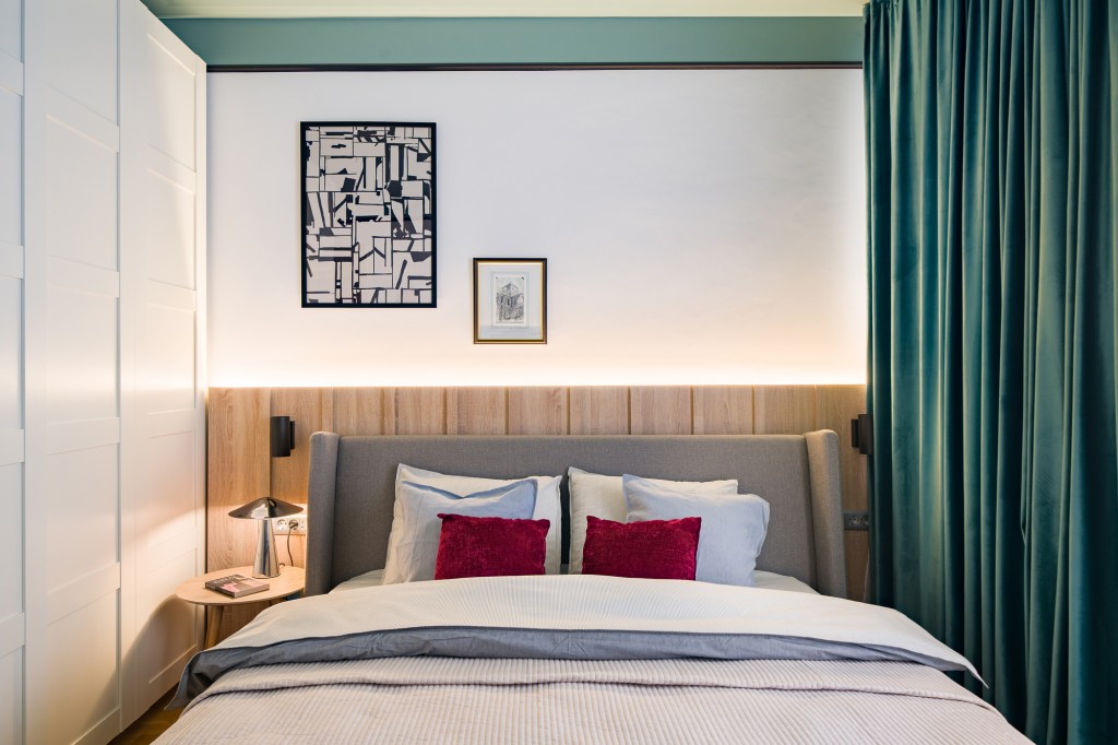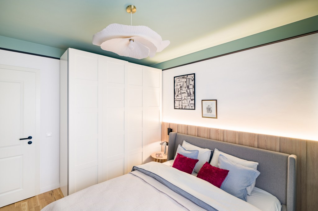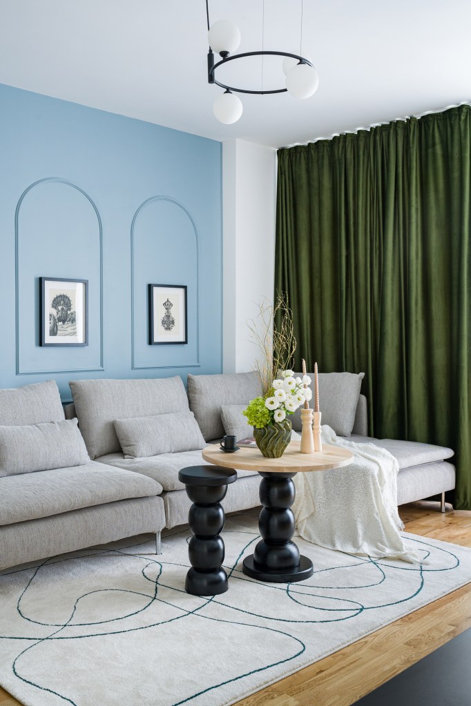 Cromatica folosită în amenajare este probabil aspectul care cântărește cel mai mult în esetica obținută. Tonurile de gri, albastru și verde, integrate cu măsură dau interiorului un aer cald și jucăuș.