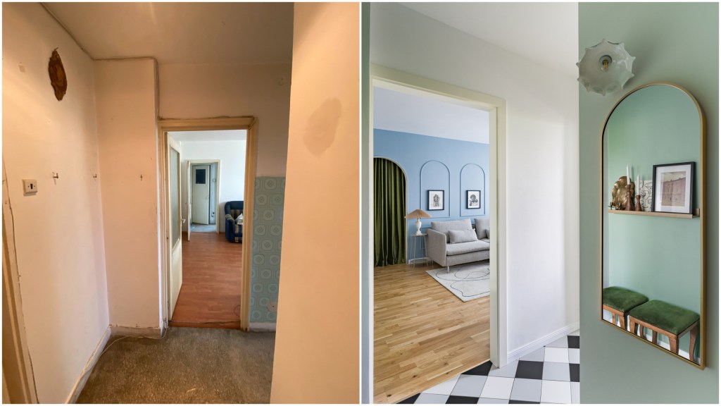 A început cu un interior care avea linoleum lipit pe jos și humă pe pereți, sub un strat de vopsea lavabilă, lucru comun în amenajările înainte anilor 2000. Anda a văzut potențialul apartamentului dincolo de aspectul său general ponosit și de suprafața de doar 48 metri pătrați, cu tot cu balcon. S-a încăpățânat să aducă spațiul în prezent și a mizat pe culori dinamice și pe detalii care să personalizeze fiecare colțișor, având grijă să se încadreze în bugetul cu care ea și partenerul ei au pornit la drum.