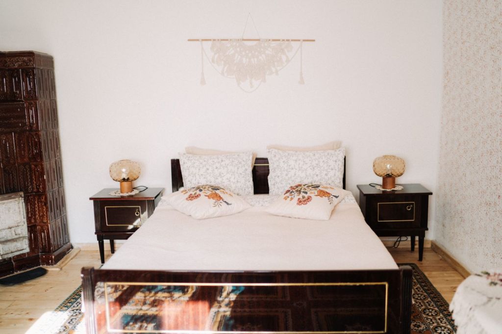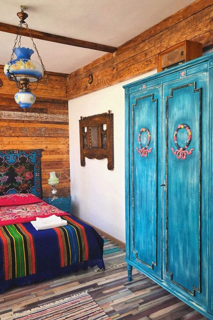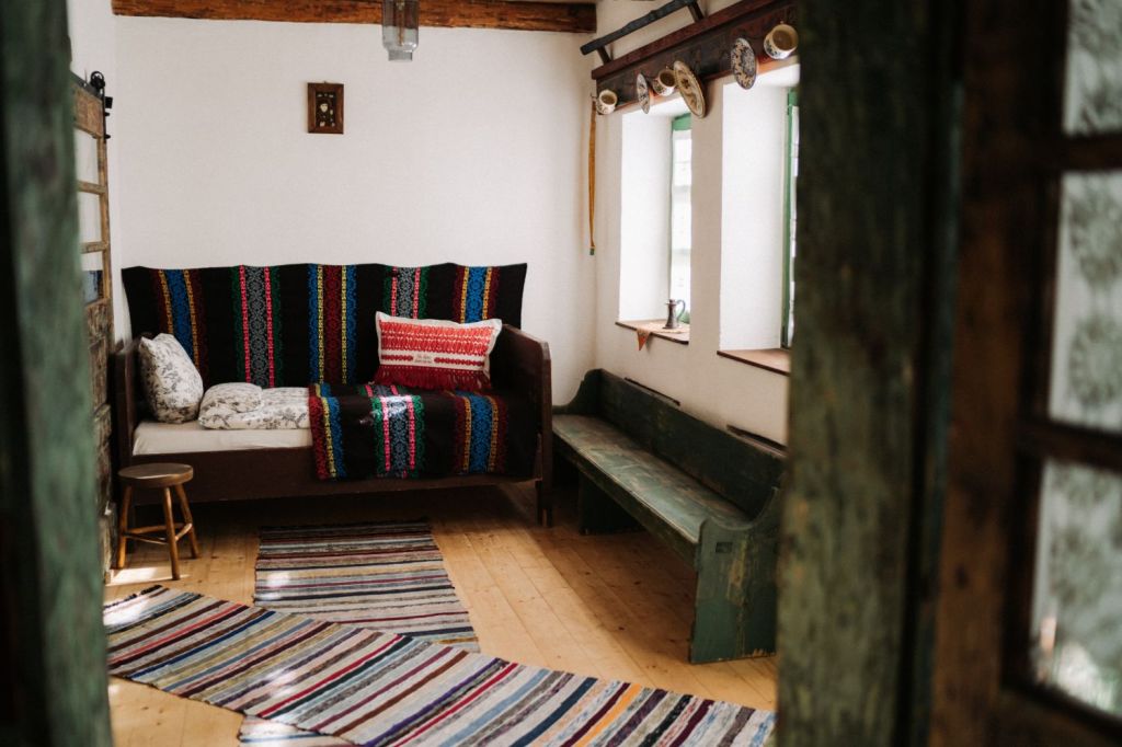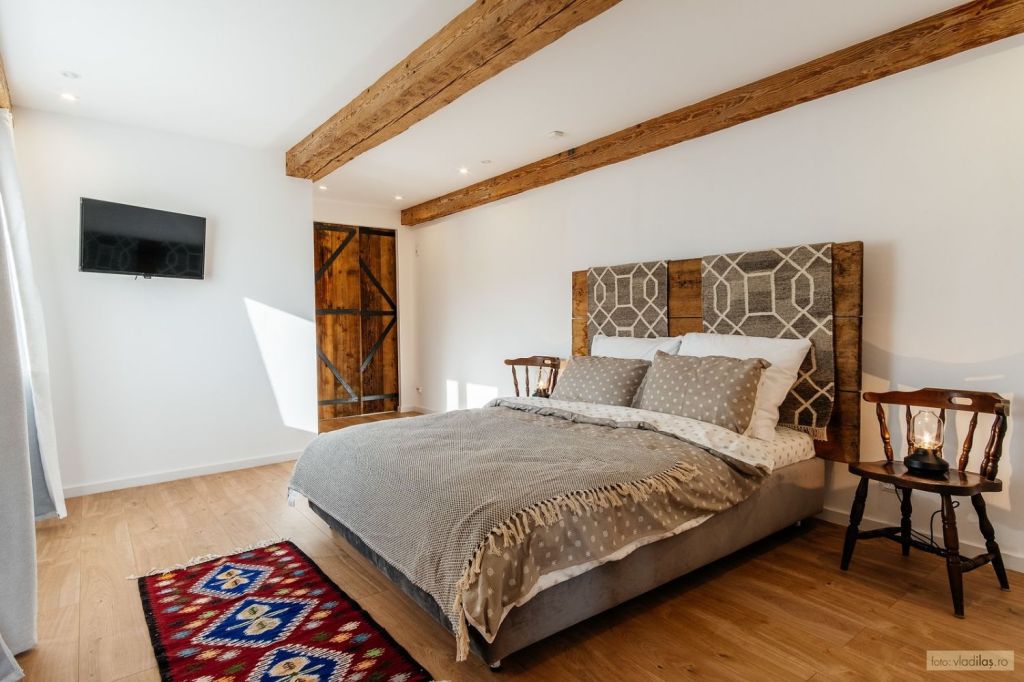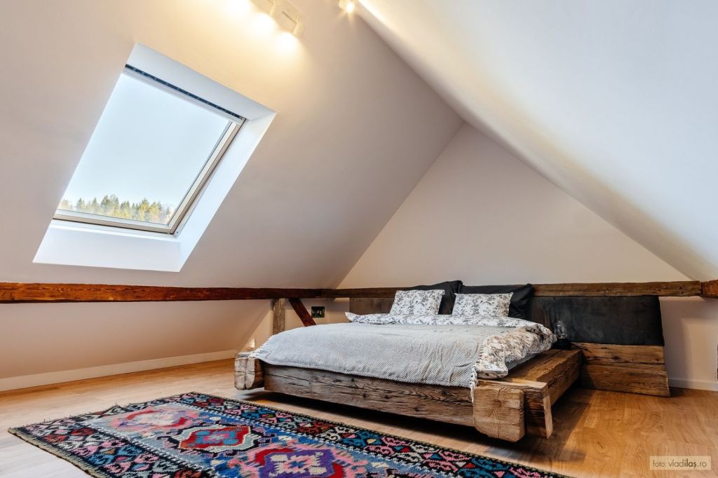 În alte camere, decorul este mai degrabă rural, ca la bunici, cu mobilier tradițional, țesături și bibelourilor, iar latura de modern este prezentă în băi, din care nu lipsesc, însă, nici elementele vintage, precum clasicul lighean.