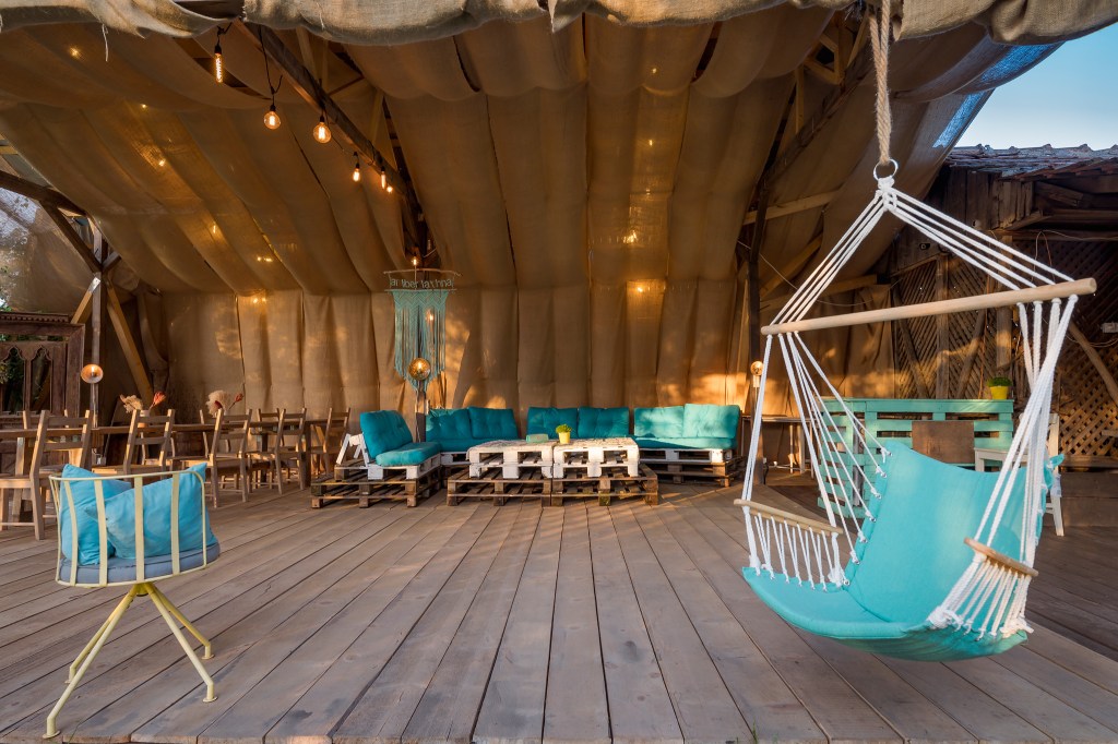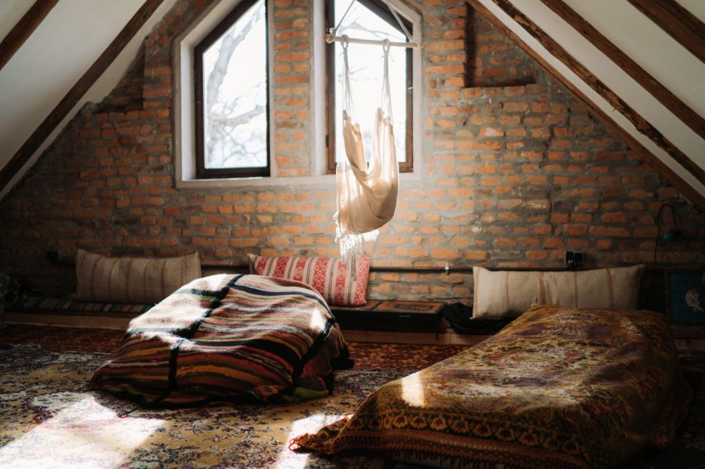 Retreat-ul înseamnă, în primul rând, o curte de 2500 metri pătrați, „sufrageria de vară” în care au creat multe spații de relaxare: o terasă mare acoperită, un umbrar din nuiele, zona de baloți de paie, câteva zone de stat la umbră în șezlonguri sau hamace, piscină, loc de luat masa în porumbarul vechi și, bineînțeles, casa veche. Diana și Alex închiriază integral „Rural ai liber la tihnă“, iar spațiul de cazare este gândit pentru grupuri mici.