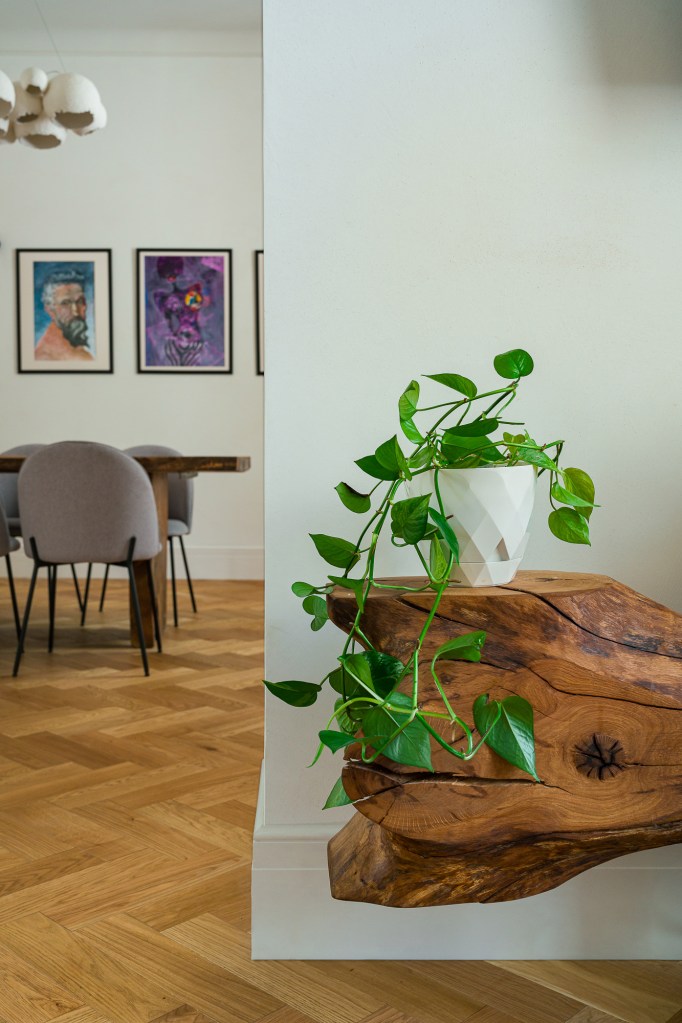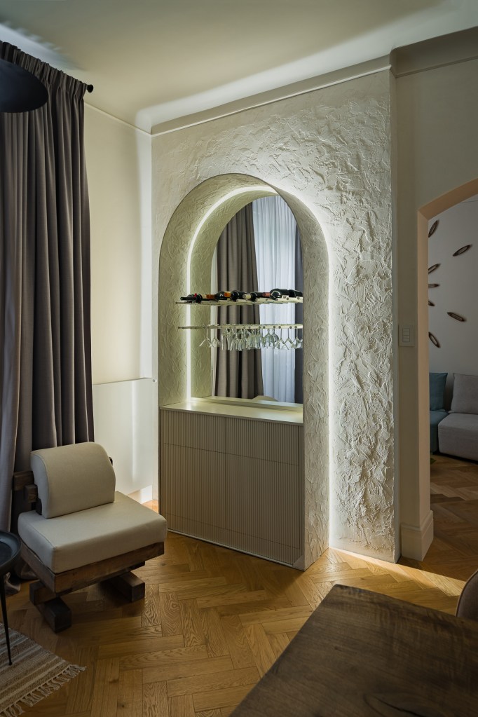 Amenajarea apartamentului din zona străzii Polone nu a pornit de la o temă precisă. A contat însă mult dialogul dintre cele două arhitecte și proprietarul locuinței, dar și flexibilitatea de a testa idei noi care să ducă la estetica dorită, care este un amestec de texturi, materialele și obiecte. Pentru acest proiect, Anca și Alexandra au colaborat cu mai mulți artizani și meșteri locali, lucru care a făcut ca spațiul să dobândească autenticitate.