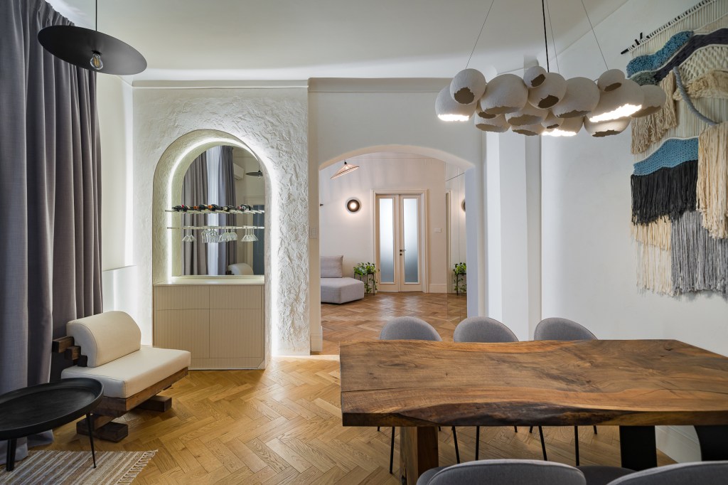 Arhitectele Anca Ionescu și Alexandra Nicolau, de la Kulcuș Design, au căutat să găsească formula potrivită de a scrie o poveste armonioasă într-un apartament de la 1939, pornind de la elemente de design care la prima vedere nu funcționează împreună, unele din zona tradițional românească, altele boho, scandinave și din stilul wabi-sabi.