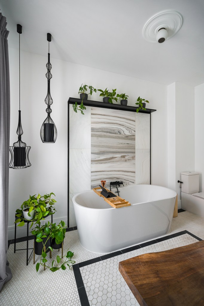 - Integrează elemente specifice designululi biofilic. Folosește materiale naturale (marmură, piatră, teracotă), țesături din fibre naturale (bumbac, in, cânepă, iută), lumină naturală și evident, plante. Conexiunea cu natura este un aspect foarte important în design.
