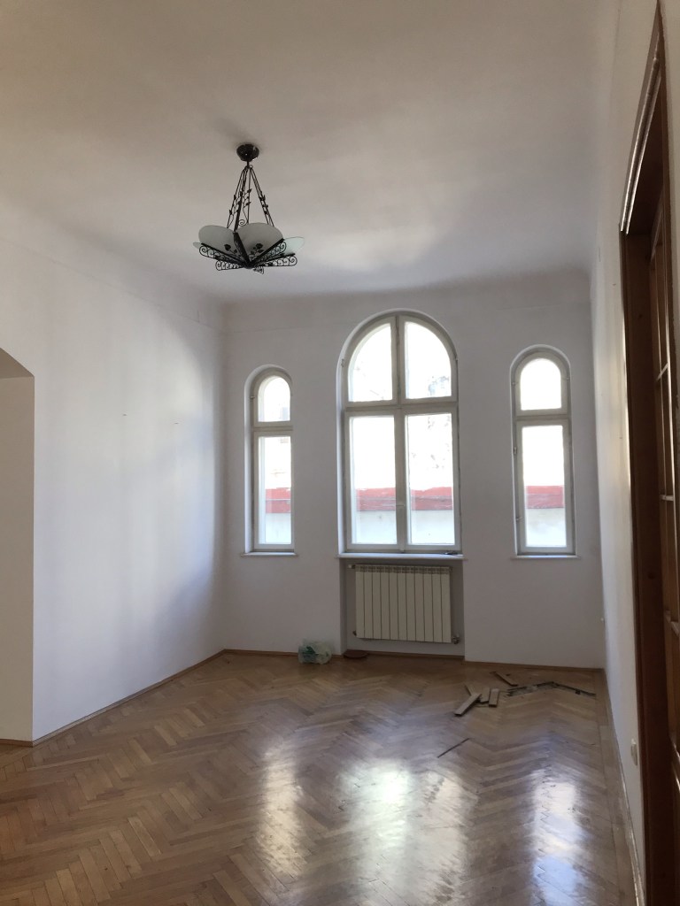 Proiectul a durat doi ani și a presupus renovarea unui apartament situat într-o clădire în stil neoromânesc din zona străzii Polone, din Capitală. Apartamentul are o suprafață de 150 metri pătrați și o compartimentare circulară. Este compus din cinci încăperi: bibliotecă, living, dining, birou, dormitor, bucătărie, două băi și spații de depozitare. Șantierul a durat destul de mult, fiind vorba de un apartament construit în anul 1939 care a avut nevoie de reparații capitale. Bugetul a fost de aproximativ 100.000 euro.