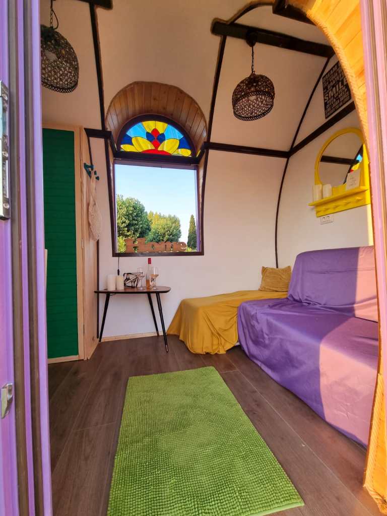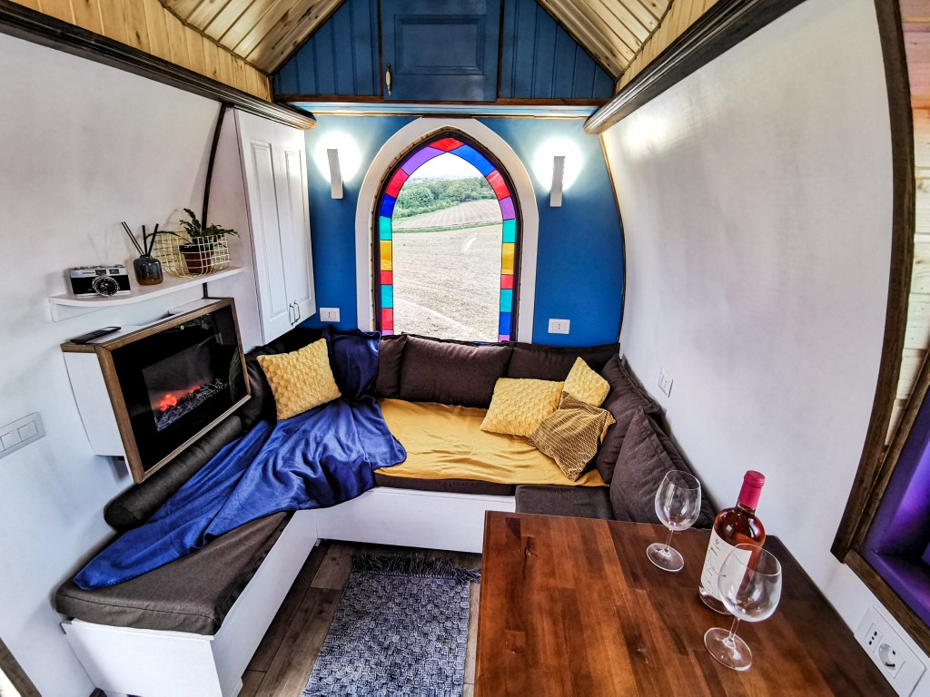 Anda și Tudor Maxim au auzit prima dată de conceptul de tiny house în 2011, de la un prieten american care locuia într-o casă mică pe care și-a construit-o singur. Le plăcea oricum să călătorească în spații mici – au vizitat România în lung și-n lat în rulotă, ba chiar și locuri din Europa -, astfel că dorința de a construi un tiny house a apărut natural. Mai mult de curiozitatea procesului și din pasiune, cu ajutorul unor meșteri artizani din Bucovina, în 2018 a luat naștere Rainbow. O căsuță de 4,1 metri lungime și 2,1 lățime, cu pereți rotunzi și acoperiș cu dranițe (scândurele subțiri din lemn), care i-a purtat vreme de doi ani prin țară. În 2019, casa mobilă a fost închiriată pentru evenimente, iar în vara anului trecut a fost parcată în Vama Veche și listată pe Airbnb, unde a avut mare succes.