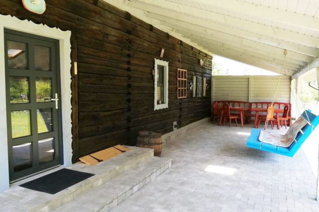 Punctul forte al locației, pe lângă grădina generoasă cu gazon tăiat ireproșabil, este terasa spațioasă cu vedere la pădure, una pe care o poți admira din leagăn.
